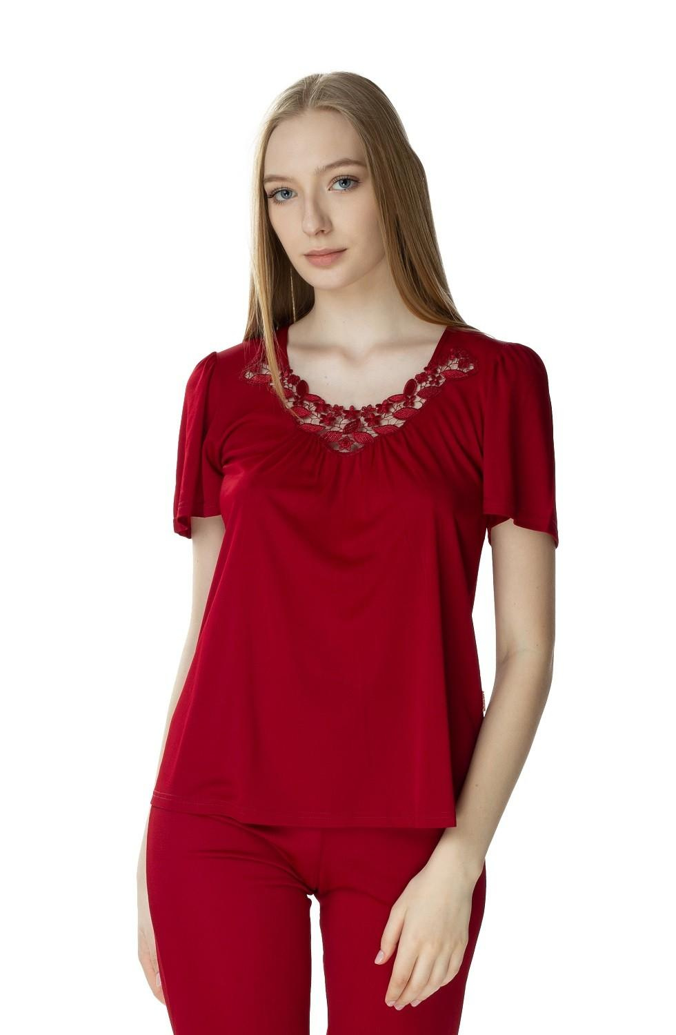 - Klasyka połączona z piękną kwiatową gipiurą umieszczoną na dekolcie. Koszulka Matyldy ma luźny krój, krótki rękawek, a zaokrąglony dekolt zdobi piękna gipiura. Spodnie na gumce mają klasyczny i prosty krój. To idealny wybór nie tylko na letnie noce.