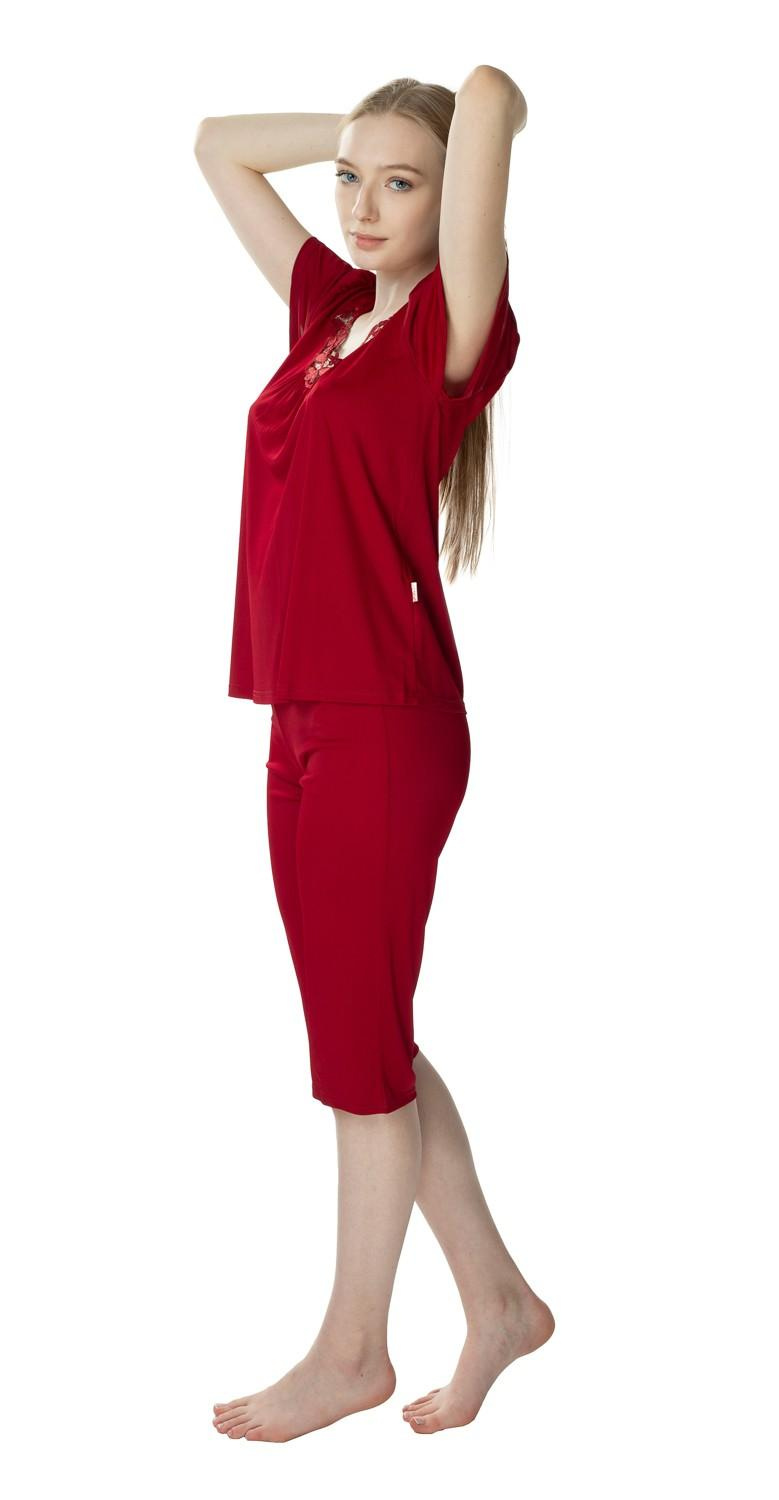 Piżama Matylda 3639 to połączenie luźnego kroju oraz nowoczesnego designu, który dostosowuje się do sylwetki, zapewniając pełną swobodę ruchów. Dzięki krótkim rękawom oraz spodniom 3/4, jest doskonałą propozycją na cieplejsze noce, a okrągły dekolt dodaje subtelnej kobiecości, idealnej dla pań w każdym wieku.