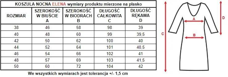 - Koszula nocna Elena posiada przepiękną gipiurę na dekolcie z motywem motylka. Koszula ma luźny krój, swobodnie opływający ciało, dzięki czemu będziesz czuć się w niej swobodnie i wygodnie w każdej sytuacji.