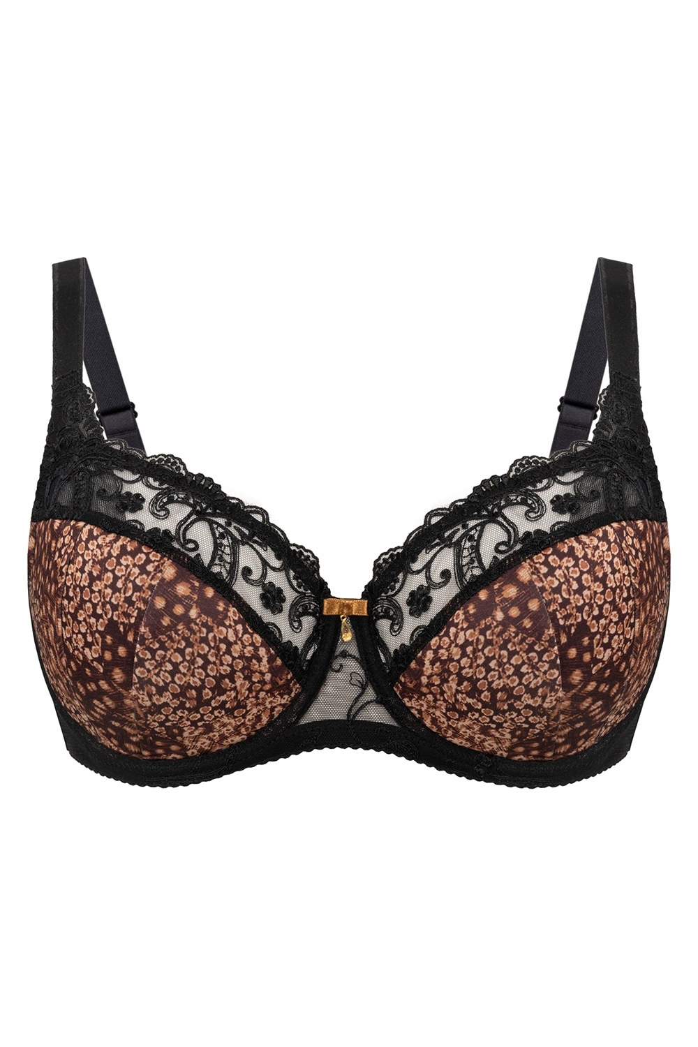 - Elegancki design: Klasyczny kształt i subtelne detale sprawiają, że biustonosz prezentuje się niezwykle estetycznie. Cynamonowe i czarne akcenty nadadzą Twojej bieliźnie odrobinę ekstrawagancji.