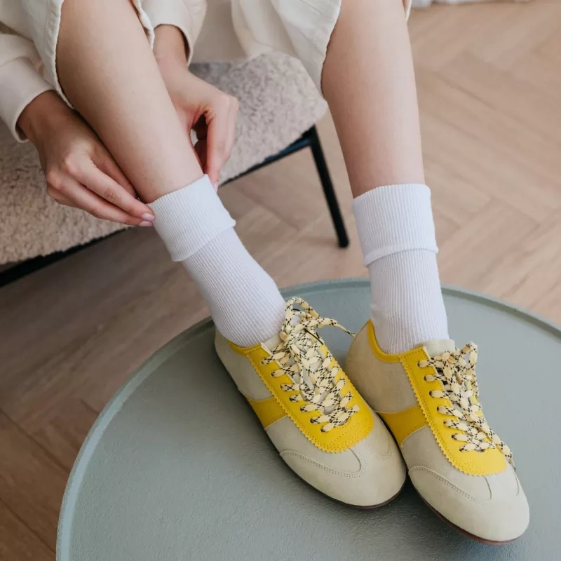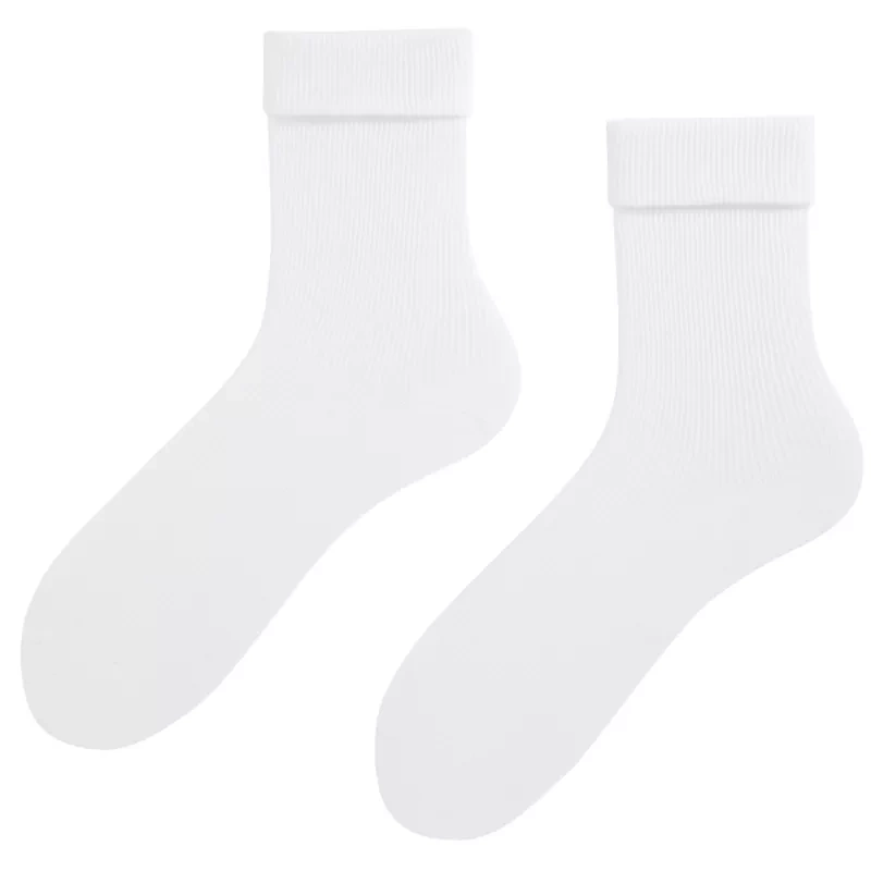 - Wygodne gładkie skarpetki damskie, uszyte z wysokiej jakości bawełny z dodatkiem włókien elastycznych. Skarpetki z bezuciskowym ściągaczem