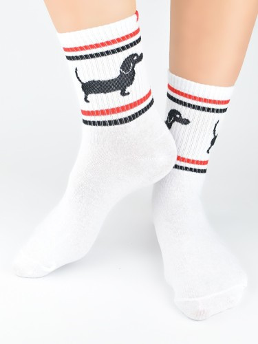 - Bawełniane skarpetki w białym kolorze z uroczym motywem jamnika. Ciepłe i wygodne, idealne na chłodne dni, doskonałe do relaksu w domu lub jako uroczy prezent!