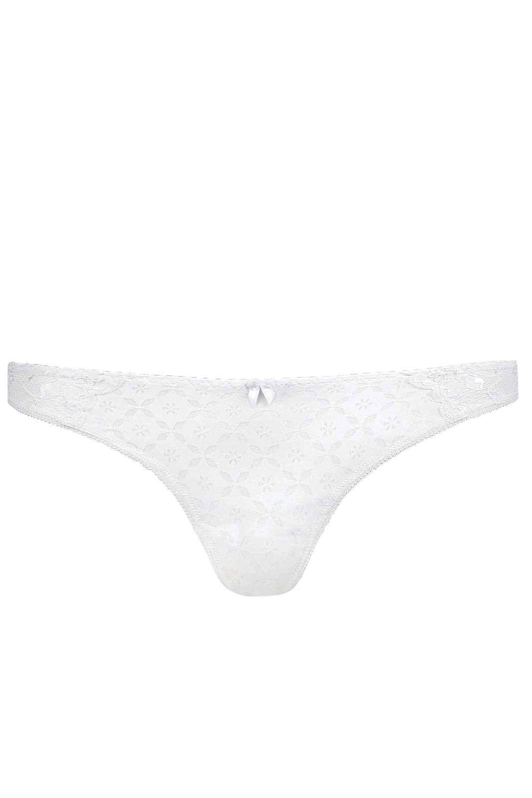 - Białe stringi żakardowe - klasyczny kolor, który pasuje do każdej stylizacji.