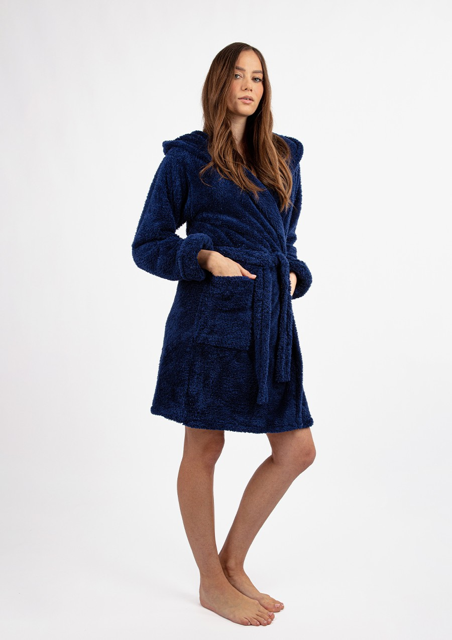 - Puchaty szlafroczek od marki Dkaren. Niesamowicie miękki i delikatny w dotyku. Przyjazny dla skóry. Posiada dwie pokaźne kieszenie oraz kaptur. Dostępny w wielu wariantach kolorystycznych.