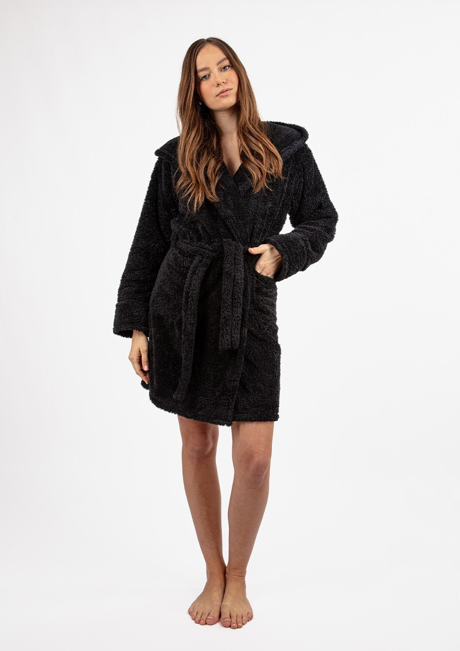 - Puchaty szlafroczek od marki Dkaren. Niesamowicie miękki i delikatny w dotyku. Przyjazny dla skóry. Posiada dwie pokaźne kieszenie oraz kaptur. Dostępny w wielu wariantach kolorystycznych.