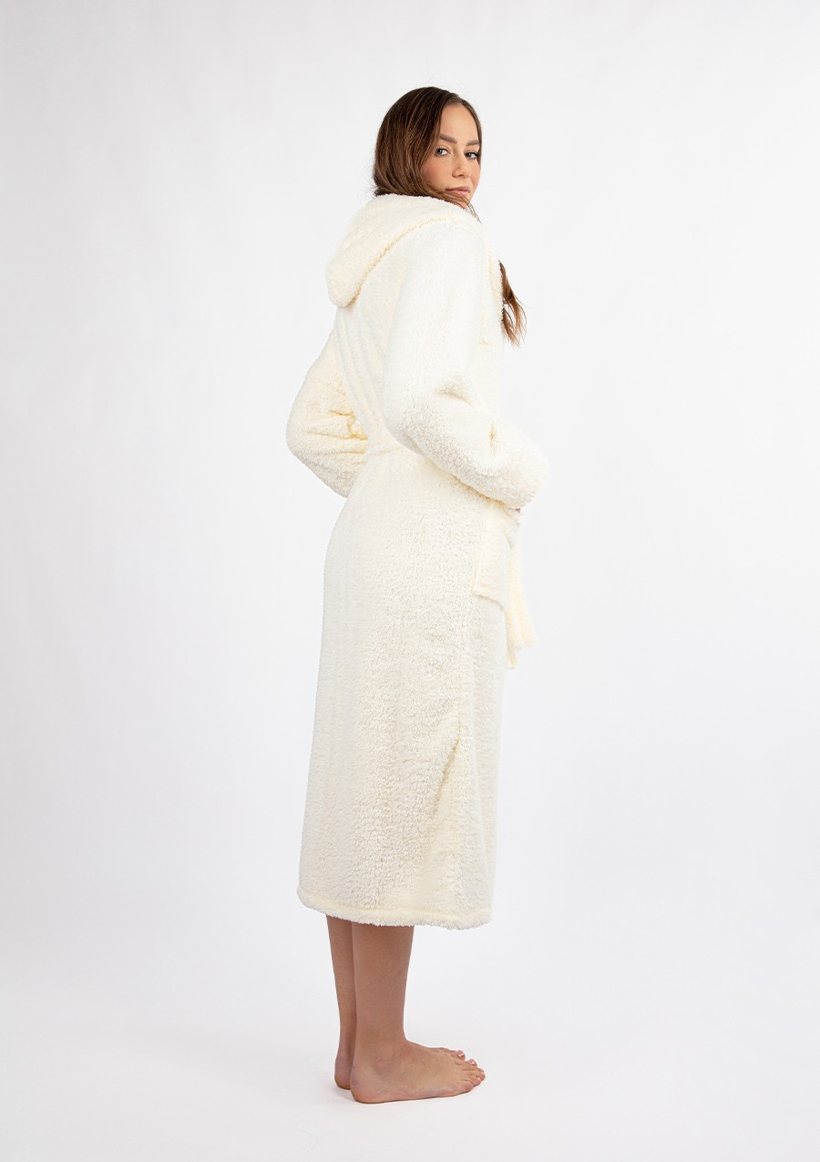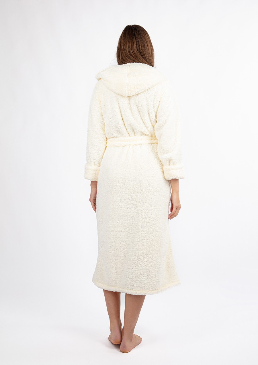 PODOMKA Z KAPTUREM USZYTA Z NIEZWYKLE MIĘKKIEGO MATERIAŁU BARDZO DOBREJ JAKOŚCI PO BOKACH DWIE KIESZENIE RĘKAWY Z MANKIETAMI DO PODOMKI JEST RÓWNIEŻ PASEK DŁUGOŚĆ PODOMKI - 120 CMLubisz, gdy mięciutki materiał dotyka Twojego ciała, a Ty możesz się nim otulić, zapomnieć o chłodzie i po prostu się zrelaksować? Mamy coś właśnie dla Ciebie! Długa podomka Diana sprawi, że poczujesz się komfortowo, ale wciąż będziesz wyglądać pięknie! Miękki, pluszowy materiał sprawi, że poczujesz się jak pod bardzo miękkim kocem. Możesz wybrać jeden z wielu dostępnych kolorów. Długość szlafroka, dwie kieszenie po bokach oraz obszerny kaptur pozwalają na całkowite ukrycie się w nim – brzmi jak marzenie, które bardzo łatwo możesz spełnić! Dołączony do zestawu pas pozwoli Ci szczelnie się owinąć i zrelaksować z dobrą książką, serialem lub lampką wina – decyzja należy do Ciebie. Zadbaj o swój komfort i dobre samopoczucie kupując mięciutki i niezwykle uroczy szlafrok Diana w Twoim ulubionym kolorze! Jak prać i prasować? Taki materiał najlepiej prać ręcznie w temperaturze 30°C. Proszę nie chlorować, nie czyścić chemicznie i nie wirować. Prasować w temperaturze 110°C.Otul się najbardziej miękkim i luksusowym szlafrokiem, jakiego kiedykolwiek doświadczyłeś. Nasze puchowe szlafroki zapewnią Ci komfort i wygodę przez cały dzień. Bez względu na to, czy odpoczywasz w domu, czy szykujesz się na wyjazd, te szlafroki są idealne na każdą okazję. Skład surowcowy: 100% poliester.Szlafrok Długości DIANA w Kolorze Puch Ecru - Dkaren