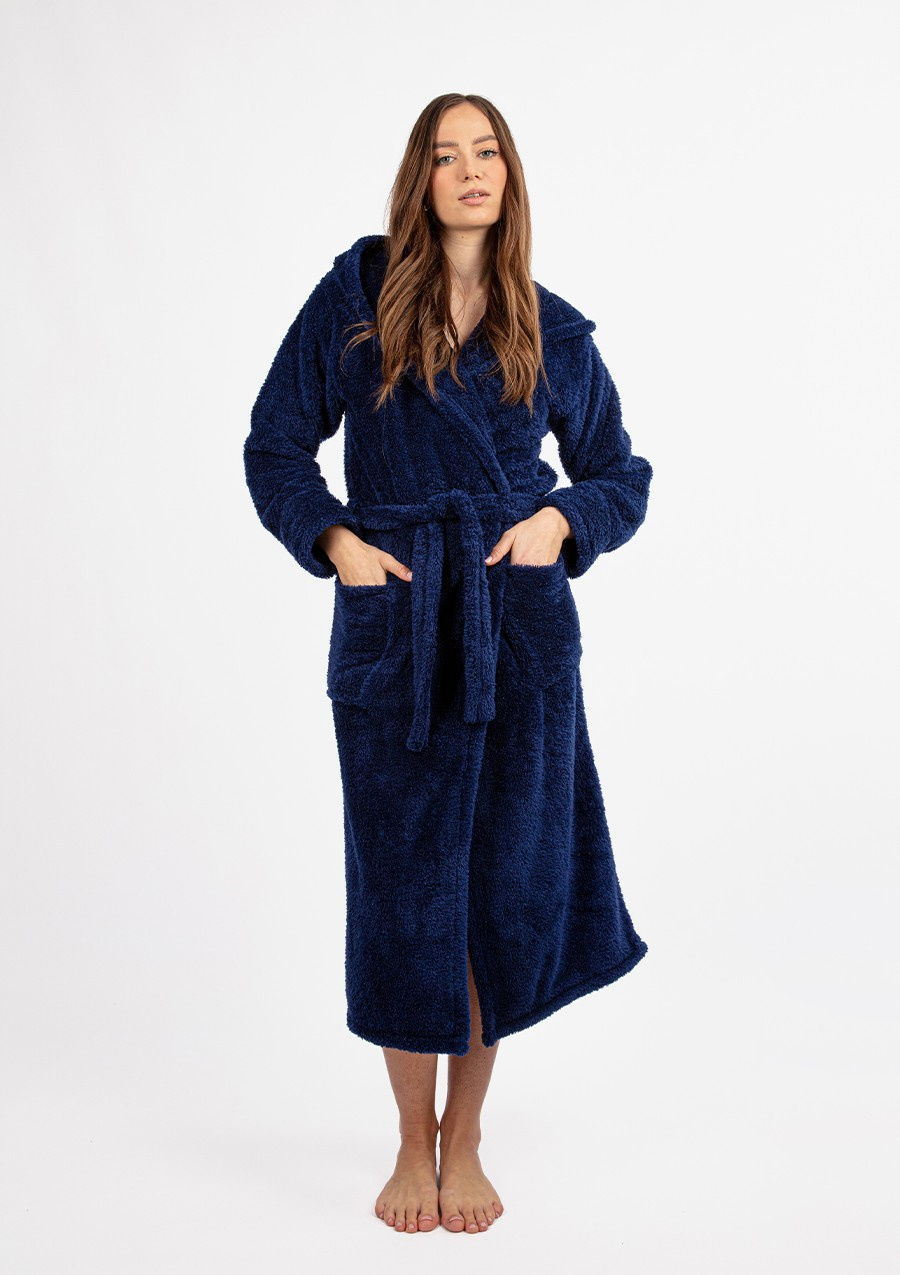 PODOMKA Z KAPTUREM USZYTA Z NIEZWYKLE MIĘKKIEGO MATERIAŁU BARDZO DOBREJ JAKOŚCI PO BOKACH DWIE KIESZENIE RĘKAWY Z MANKIETAMI DO PODOMKI JEST RÓWNIEŻ PASEK DŁUGOŚĆ PODOMKI - 120 CMLubisz, gdy mięciutki materiał dotyka Twojego ciała, a Ty możesz się nim otulić, zapomnieć o chłodzie i po prostu się zrelaksować? Mamy coś właśnie dla Ciebie! Długa podomka Diana sprawi, że poczujesz się komfortowo, ale wciąż będziesz wyglądać pięknie! Miękki, pluszowy materiał sprawi, że poczujesz się jak pod bardzo miękkim kocem. Możesz wybrać jeden z wielu dostępnych kolorów. Długość szlafroka, dwie kieszenie po bokach oraz obszerny kaptur pozwalają na całkowite ukrycie się w nim – brzmi jak marzenie, które bardzo łatwo możesz spełnić! Dołączony do zestawu pas pozwoli Ci szczelnie się owinąć i zrelaksować z dobrą książką, serialem lub lampką wina – decyzja należy do Ciebie. Zadbaj o swój komfort i dobre samopoczucie kupując mięciutki i niezwykle uroczy szlafrok Diana w Twoim ulubionym kolorze! Jak prać i prasować? Taki materiał najlepiej prać ręcznie w temperaturze 30°C. Proszę nie chlorować, nie czyścić chemicznie i nie wirować. Prasować w temperaturze 110°C.Otul się najbardziej miękkim i luksusowym szlafrokiem, jakiego kiedykolwiek doświadczyłeś. Nasze puchowe szlafroki zapewnią Ci komfort i wygodę przez cały dzień. Bez względu na to, czy odpoczywasz w domu, czy szykujesz się na wyjazd, te szlafroki są idealne na każdą okazję. Skład surowcowy: 100% poliester.Odkryj magię komfortu z szlafrokiem DIANA DŁUGA w kolorze puch granat!