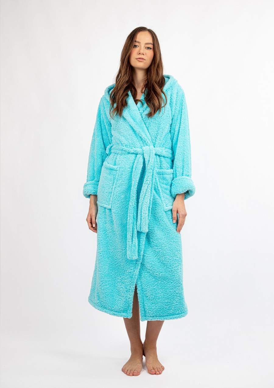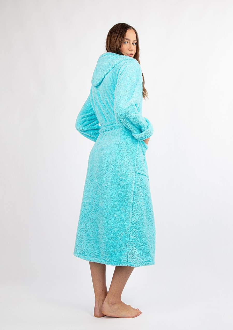 - Stylowy wygląd: Kolor PUCH TURKUS dodaje świeżości i elegancji, czyniąc szlafrok nie tylko praktycznym elementem garderoby, ale i modnym dodatkiem.