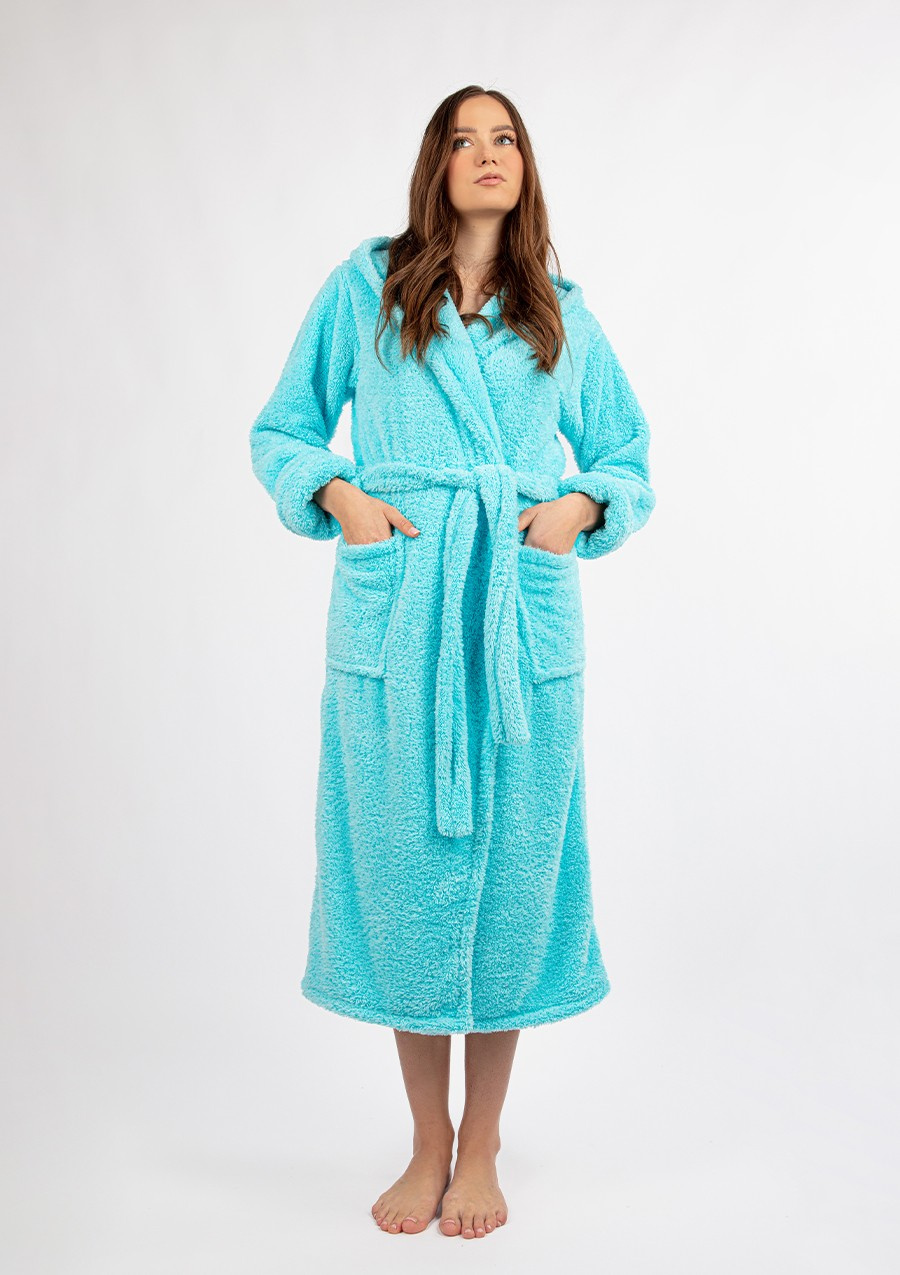 PODOMKA Z KAPTUREM USZYTA Z NIEZWYKLE MIĘKKIEGO MATERIAŁU BARDZO DOBREJ JAKOŚCI PO BOKACH DWIE KIESZENIE RĘKAWY Z MANKIETAMI DO PODOMKI JEST RÓWNIEŻ PASEK DŁUGOŚĆ PODOMKI - 120 CMLubisz, gdy mięciutki materiał dotyka Twojego ciała, a Ty możesz się nim otulić, zapomnieć o chłodzie i po prostu się zrelaksować? Mamy coś właśnie dla Ciebie! Długa podomka Diana sprawi, że poczujesz się komfortowo, ale wciąż będziesz wyglądać pięknie! Miękki, pluszowy materiał sprawi, że poczujesz się jak pod bardzo miękkim kocem. Możesz wybrać jeden z wielu dostępnych kolorów. Długość szlafroka, dwie kieszenie po bokach oraz obszerny kaptur pozwalają na całkowite ukrycie się w nim – brzmi jak marzenie, które bardzo łatwo możesz spełnić! Dołączony do zestawu pas pozwoli Ci szczelnie się owinąć i zrelaksować z dobrą książką, serialem lub lampką wina – decyzja należy do Ciebie. Zadbaj o swój komfort i dobre samopoczucie kupując mięciutki i niezwykle uroczy szlafrok Diana w Twoim ulubionym kolorze! Jak prać i prasować? Taki materiał najlepiej prać ręcznie w temperaturze 30°C. Proszę nie chlorować, nie czyścić chemicznie i nie wirować. Prasować w temperaturze 110°C.Otul się najbardziej miękkim i luksusowym szlafrokiem, jakiego kiedykolwiek doświadczyłeś. Nasze puchowe szlafroki zapewnią Ci komfort i wygodę przez cały dzień. Bez względu na to, czy odpoczywasz w domu, czy szykujesz się na wyjazd, te szlafroki są idealne na każdą okazję. Skład surowcowy: 100% poliester.Szlafrok Damski DIANA DŁUGA w kolorze PUCH TURKUS to idealna propozycja dla kobiet, które cenią sobie komfort, jakość oraz styl w codziennym życiu. Ten elegancki i przytulny szlafrok to doskonały wybór na relaksujące poranki oraz wieczory, gdy chcesz poczuć się wyjątkowo.