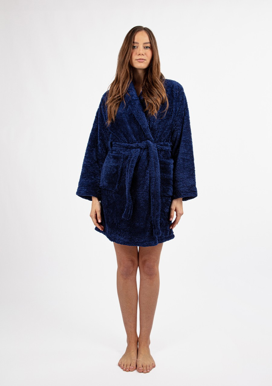 Elegancki wygląd: Granatowy kolor nadaje szlafrokowi wyrafinowanego charakteru, co czyni go idealnym dla każdej nowoczesnej kobiety.
