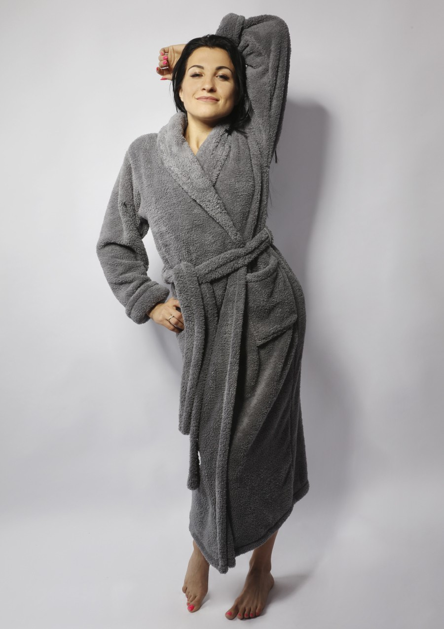 - Puchaty szlafroczek od marki Dkaren. Przyjemny w dotyku, cieplutki. Umili każdy chłodny wieczór w domu lub na tarasie. Bardzo wysoka jakość wykonania daje gwarancję maksymalnej żywotności produktu.