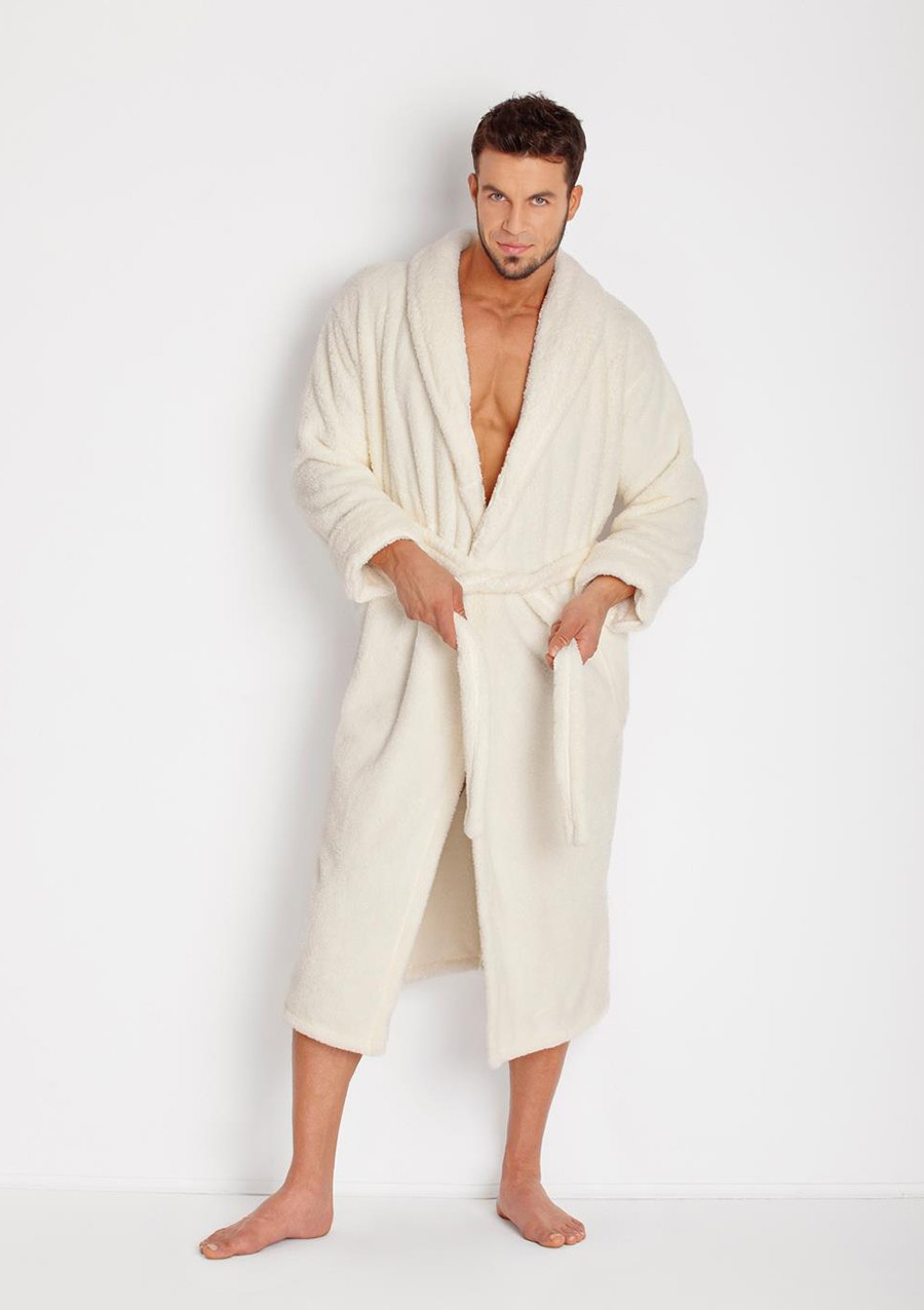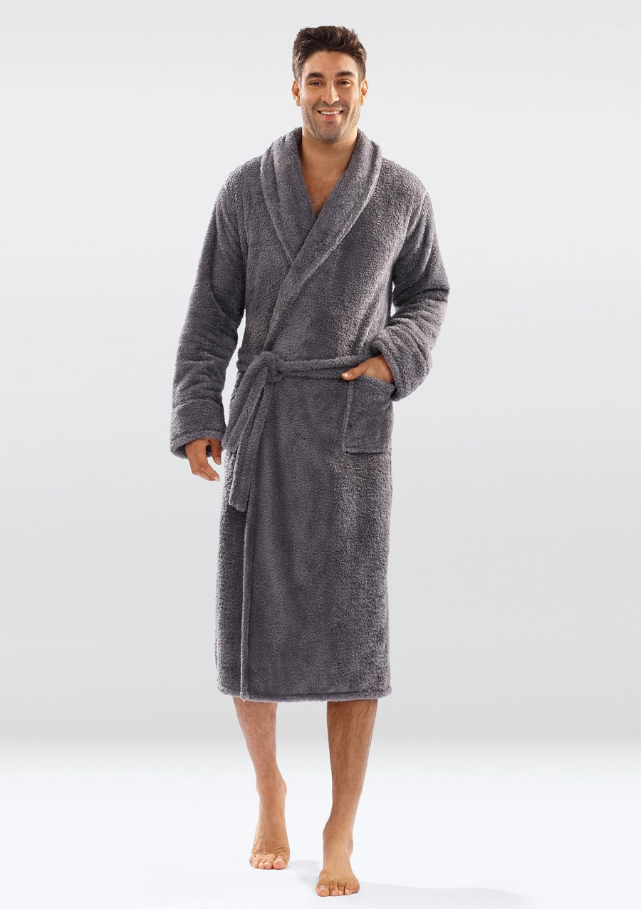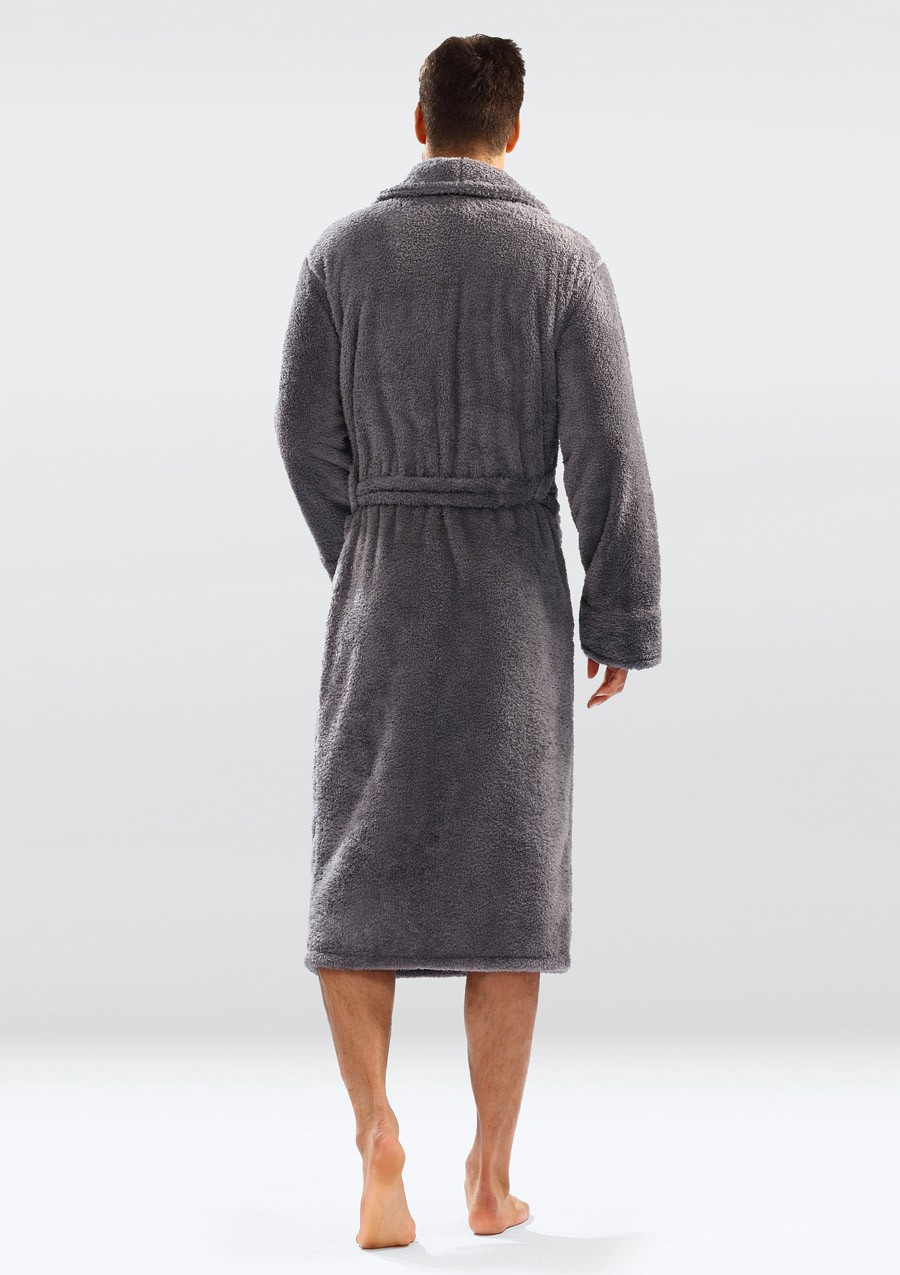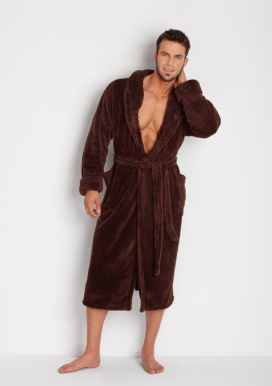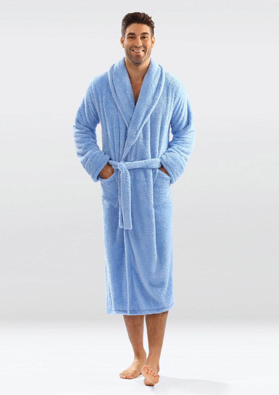 PODOMKA Z KOŁNIERZEM USZYTA Z NIEZWYKLE MIĘKKIEGO MATERIAŁU BARDZO DOBREJ JAKOŚCI PO BOKACH DWIE KIESZENIE RĘKAWY Z MANKIETAMI DO PODOMKI JEST RÓWNIEŻ PASEK. Nie tylko kobiety potrzebują odpowiedniej bielizny, aby czuć się komfortowo i atrakcyjnie. W swojej ofercie posiadamy również męskie szlafroki wykonane z bardzo przyjemnego i miękkiego pluszu. Do podomki został dołączony pasek, dzięki któremu możesz szczelnie się okryć, a znajdujące się po bokach kieszenie umożliwiają przechowywanie drobiazgów lub ogrzanie rąk. Szeroki kołnierz sprawi, że noszenie szlafroka będzie jeszcze przyjemniejsze. Jeżeli szukasz ciepłego, wykonanego z wysokiej jakości materiału męskiej podomki, to ten model sprawdzi się idealnie! Dostępny jest w wielu kolorach – czarnym, brązowym, granatowym oraz ecru, ale również w weselszych, jak na przykład fioletowy lub błękitny. Podaruj sobie odrobinę komfortu, kupując przyjemny męski szlafrok w bardzo atrakcyjnej cenie. Jak prać i prasować? Taki materiał najlepiej prać ręcznie w temperaturze 30°C. Proszę nie chlorować, nie czyścić chemicznie i nie wirować. Prasować w temperaturze 110°C. Skład surowcowy: 100% poliester.Szczegółowe dane