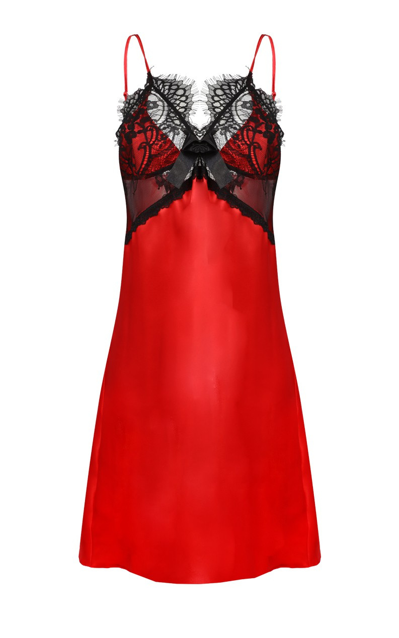 ZWIEWNA SATYNOWA KOSZULKA. ODCIĘTE POD BIUSTEM, PROFILOWANE MISECZKI Z CZARNEJ KORONKI ZAPEWNIAJĄ KOMFORT NOSZENIA, A JEDNOCZEŚNIE ZMYSŁOWO EKSPONUJĄ DEKOLT. CAŁOŚĆ UZUPEŁNIA NA ŚRODKU KOKARDKA; RAMIĄCZKA CIENKIE, REGULOWANE. DOSTĘPNA WERSJA KOLORYSTYCZNA: WSZYSTKIE ODCIENIE SATYNY (KORONKA CZARNA). MATERIAŁ: SATYNA. Skład surowcowy: 100% poliester. Zwykła halka to dla Ciebie za mało? I słusznie! Dlatego w naszej ofercie znajdziesz nietuzinkowy model o dźwięcznej nazwie Beatrice. Miseczki wykonane są z postrzępionej na końcach koronki, co dodaje jej charakteru. Pod biustem również znajduje się transparentna koronka, która pozwoli Ci odsłonić trochę ciała. Całość wykonana jest z satyny i prezentuje się nadzwyczaj luksusowo. Dostępna jest w wielu kolorach, a każdy z nich wygląda olśniewająco. Cienkie ramiączka pozwalają na dowolną regulację dekoltu – wszystko po to, abyś czuła się pięknie i zmysłowo, ale również swobodnie. Długość halki pozwala na wyeksponowanie nóg, a ramiączka pięknie odsłaniają ramiona. Jeżeli szukasz eleganckiej bielizny, która będzie wykonana z wysokiej jakości materiałów, które nie będą negatywnie oddziaływały na Twoją skórę – wybierz halkę Beatrice! Jak prać i prasować? Taki materiał najlepiej prać ręcznie w temperaturze 30°C. Proszę nie chlorować, nie czyścić chemicznie i nie wirować. Prasować w temperaturze 110°C. Tego wieczoru załóż coś wygodniejszego - luksusową koszulę nocną. Wykonane z najbardziej miękkiej satyny, koszule te zapewnią Ci komfort przez całą noc. Niezależnie od tego, czy śpisz, czy wylegujesz się w domu, te koszule nocne są właśnie tym, czego potrzebujesz, aby czuć się jak najlepiej.Odkryj niezwykły komfort i luksus codziennych chwil z satynową halką BEATRICE 2874 od Dkaren! Ta elegancka halka w głębokim, zmysłowym odcieniu czerwieni nie tylko zachwyca swoim wyglądem, ale także zapewnia wyjątkowe uczucie noszenia dzięki zastosowaniu wysokiej jakości satyny. Wielką zaletą jest to, że możesz ją nosić zarówno na co dzień, jak i podczas romantycznych wieczorów.