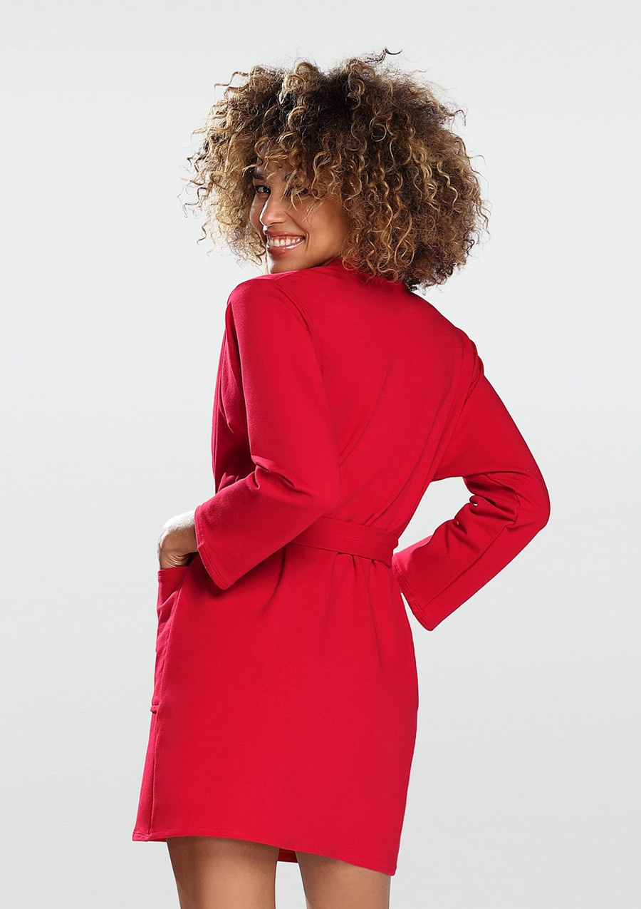 NIEZWYKLE WYGODNA I PRZYJEMNA W NOSZENIU. PODOMKA Z DŁUGIMI RĘKAWAMI,PO BOKACH KIESZENIE WIĄZANA PASKIEM. Materiał: Bawełna Skład surowcowy: 95% bawełna, 5% elastan Jeśli szukasz szlafroka, który będzie zarówno stylowy, jak i wygodny, warto rozważyć wybór krótkiego szlafroka Pola. Ten krótki szlafrok jest dostępny w szerokiej gamie kolorów i stylów, więc z pewnością znajdziesz taki, który będzie odpowiadał Twoim gustom. Szlafrok Pola z nowej kolekcji Dkaren to modny i praktyczny wybór dla każdej Kobiety. Wykonany z miękkiej, chłonnej bawełnianej tkaniny w różnych kolorach, jest idealny po prysznicu lub kąpieli. Do szlafroków dołączony jest pasujący pasek, a ich długość sięga tuż przed kolano, dzięki czemu można się w nich swobodnie poruszać. Można je również prać w pralce, co ułatwia ich pielęgnację. Niezależnie od tego, czy szukasz prezentu dla kogoś wyjątkowego, czy po prostu chcesz sprawić przyjemność sobie, krótkie szlafroki Dkaren są świetnym wyborem. Szlafroczek bawełniany posiada dwie kieszonki, dzięki czemu możesz mieć przy sobie przydatne gadżety takie jak telefon czy chusteczki higieniczne. Jeśli więc szukasz stylowego i wygodnego szlafroka na wiosnę zapoznaj się z nową kolekcją Dkaren. Szlafroki są wykonane z wysokiej jakości bawełny są dostępne w wielu modnych kolorach takich jak fuksja, beż, zielony czy niebieski. Bez względu na to, czy szukasz przytulnego szlafroka, w którym będziesz się wylegiwać, czy eleganckiego i szykownego okrycia na basen lub plażę, w ofercie Dkaren znajdziesz coś dla siebie. Dostępne są różne rozmiary, więc na pewno znajdziesz swój. *Uwaga! Produkt pakowany w oryginalne worki strunowe z logiem Dkaren. Nie mieści się w pudełko prezentowe i standardowe. Nie ma możliwości wyboru opakowania.Odkryj niepowtarzalny komfort i styl z szlafrokiem bawełnianym POLA marki Dkaren! Nasza podomka w intensywnym czerwonym kolorze to doskonały wybór dla kobiet, które cenią sobie elegancję oraz wygodę w codziennych chwilach relaksu.
