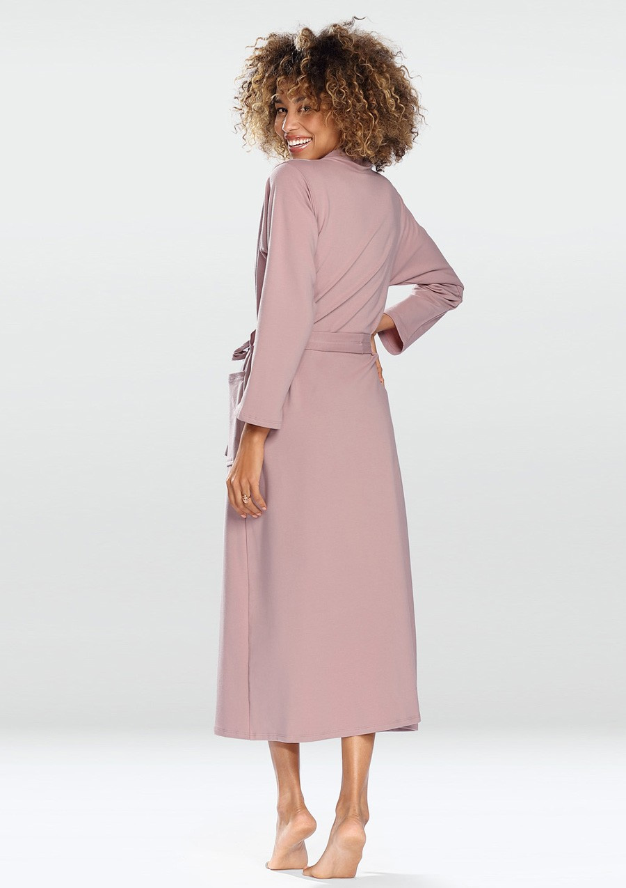Pudrowy róż to kolor, który dodaje delikatności i kobiecości. Szlafrok posiada długi rękaw oraz wiązany pasek, co umożliwia idealne dopasowanie do sylwetki. Dodatkowo, szlafrok wyposażony jest w praktyczne kieszenie, które sprawiają, że możesz mieć pod ręką wszystkie niezbędne drobiazgi.