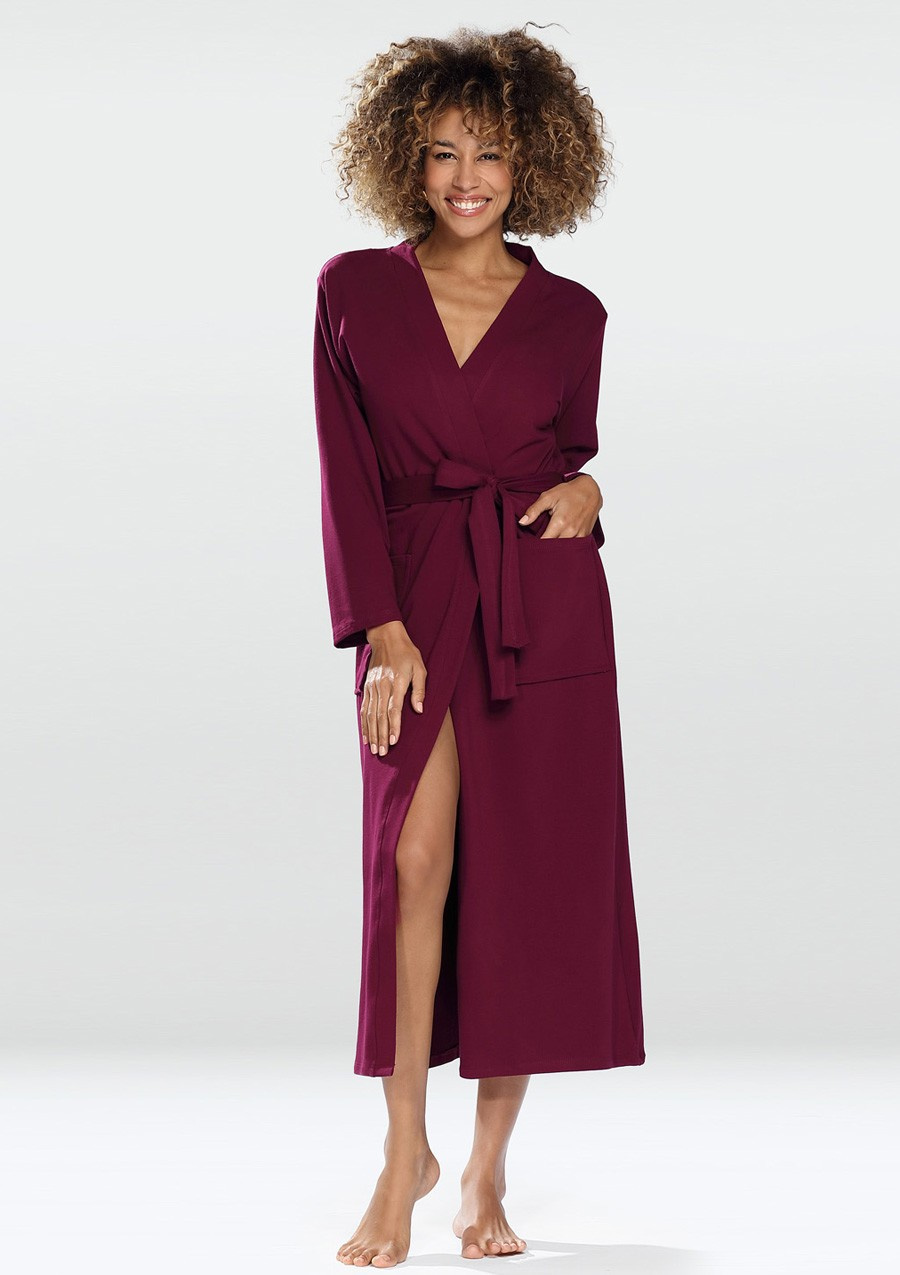 Odkryj szlafrok MELISSA w kolorze bordowym i zobacz, jak połączenie wygody z elegancją może odmienić Twoje codzienne rytuały. Zamów już dziś!