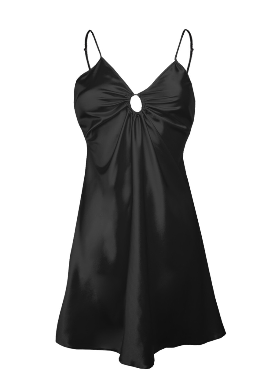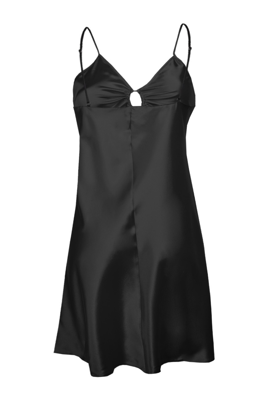 Halka Kamaria to krótka satynowa koszulka nocna o okrągłym splocie przy dekolcie, które podkreśla pięknie biust. Cienkie, regulowane ramiączka zwężane ku górze pozwalają dostosować długość do naszych preferencji. Halka Kamaria jest świetną propozycją na noc. Satynowy materiał zapewnia doskonały komfort snu. Halka dostępna jest w czterech kolorach: czarnym, czerwonym, granatowym oraz białym. Jak nosić satynową Halkę Kamaria? Halka Kamaria może również stanowić wieczorną stylizację. Satyna już od dawna króluje na półkach sklepowych nie tylko w dziale bielizny nocnej. Krótkie satynowe sukienki o kroju koktajlowym to must have ostatnich sezonów. Halka zestawiona z dłuższą marynarką lub kardiganem pozwoli na wieczorną stylizację latem. Halka Kamaria to oczywiście także doskonała propozycja na upojny wieczór z partnerem. Satyna to niezwykle seksowny i zmysłowy materiał, który działa na mężczyzn. Jeśli chcesz go zaskoczyć swoim nieziemskim lookiem, ta propozycja jest dla Ciebie! Jak prać i prasować? Taki materiał najlepiej prać ręcznie w temperaturze 30°C. Proszę nie chlorować, nie czyścić chemicznie i nie wirować. Prasować w temperaturze 110°C. Skład surowcowy: 100% poliesterHalka Kamaria - Satyna Czarny - Dkaren
