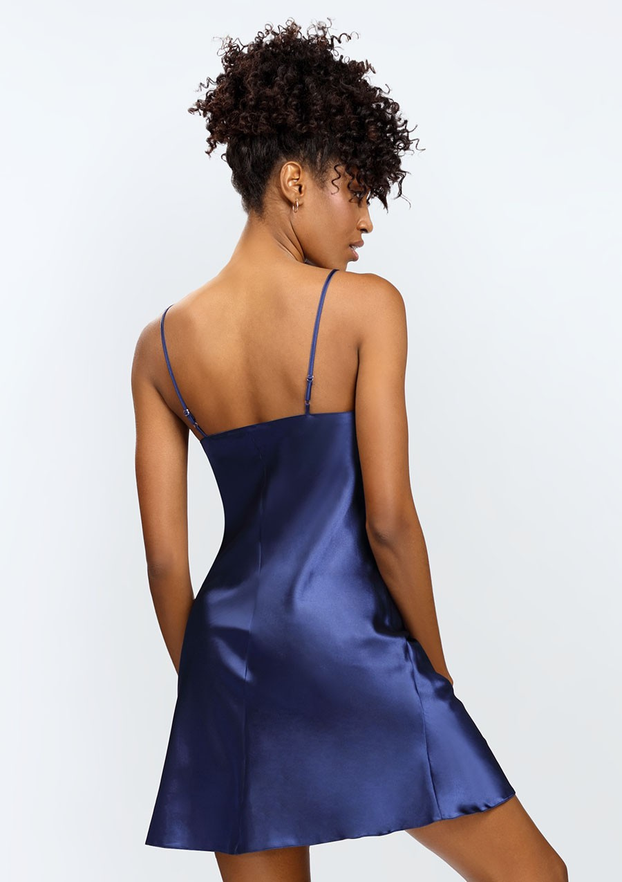 Halka Kamaria to krótka satynowa koszulka nocna o okrągłym splocie przy dekolcie, które podkreśla pięknie biust. Cienkie, regulowane ramiączka zwężane ku górze pozwalają dostosować długość do naszych preferencji. Halka Kamaria jest świetną propozycją na noc. Satynowy materiał zapewnia doskonały komfort snu. Halka dostępna jest w czterech kolorach: czarnym, czerwonym, granatowym oraz białym. Jak nosić satynową Halkę Kamaria? Halka Kamaria może również stanowić wieczorną stylizację. Satyna już od dawna króluje na półkach sklepowych nie tylko w dziale bielizny nocnej. Krótkie satynowe sukienki o kroju koktajlowym to must have ostatnich sezonów. Halka zestawiona z dłuższą marynarką lub kardiganem pozwoli na wieczorną stylizację latem. Halka Kamaria to oczywiście także doskonała propozycja na upojny wieczór z partnerem. Satyna to niezwykle seksowny i zmysłowy materiał, który działa na mężczyzn. Jeśli chcesz go zaskoczyć swoim nieziemskim lookiem, ta propozycja jest dla Ciebie! Jak prać i prasować? Taki materiał najlepiej prać ręcznie w temperaturze 30°C. Proszę nie chlorować, nie czyścić chemicznie i nie wirować. Prasować w temperaturze 110°C. Skład surowcowy: 100% poliesterHalka Kamaria - satyna granat - Dkaren to nie tylko element bielizny, to prawdziwy symbol komfortu i klasy. Wykonana z wyjątkowej, wysokiej jakości satyny w głębokim odcieniu granatu, ta halka z pewnością przyciągnie uwagę każdej eleganckiej kobiety. Dzięki swojemu niezwykle dopasowanemu krojowi, pięknie podkreśla sylwetkę, oferując jednocześnie maksymalny komfort noszenia.