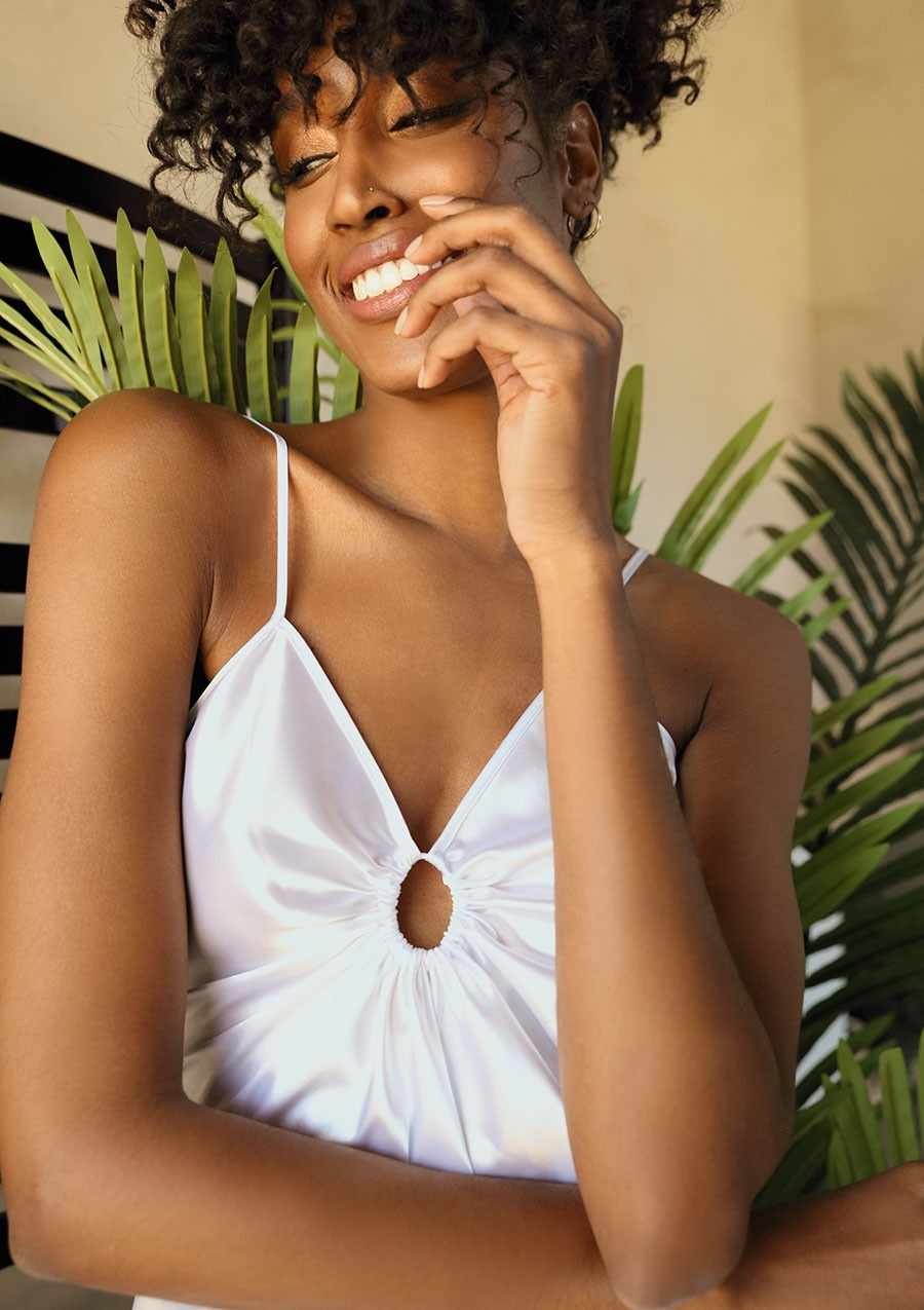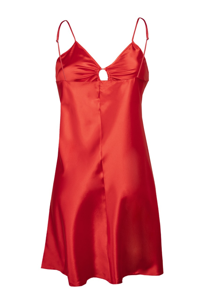 Halka Kamaria to krótka satynowa koszulka nocna o okrągłym splocie przy dekolcie, które podkreśla pięknie biust. Cienkie, regulowane ramiączka zwężane ku górze pozwalają dostosować długość do naszych preferencji. Halka Kamaria jest świetną propozycją na noc. Satynowy materiał zapewnia doskonały komfort snu. Halka dostępna jest w czterech kolorach: czarnym, czerwonym, granatowym oraz białym. Jak nosić satynową Halkę Kamaria? Halka Kamaria może również stanowić wieczorną stylizację. Satyna już od dawna króluje na półkach sklepowych nie tylko w dziale bielizny nocnej. Krótkie satynowe sukienki o kroju koktajlowym to must have ostatnich sezonów. Halka zestawiona z dłuższą marynarką lub kardiganem pozwoli na wieczorną stylizację latem. Halka Kamaria to oczywiście także doskonała propozycja na upojny wieczór z partnerem. Satyna to niezwykle seksowny i zmysłowy materiał, który działa na mężczyzn. Jeśli chcesz go zaskoczyć swoim nieziemskim lookiem, ta propozycja jest dla Ciebie! Jak prać i prasować? Taki materiał najlepiej prać ręcznie w temperaturze 30°C. Proszę nie chlorować, nie czyścić chemicznie i nie wirować. Prasować w temperaturze 110°C. Skład surowcowy: 100% poliesterHalizacja w elegancji: Halka Kamaria - Satyna Biały od Dkaren