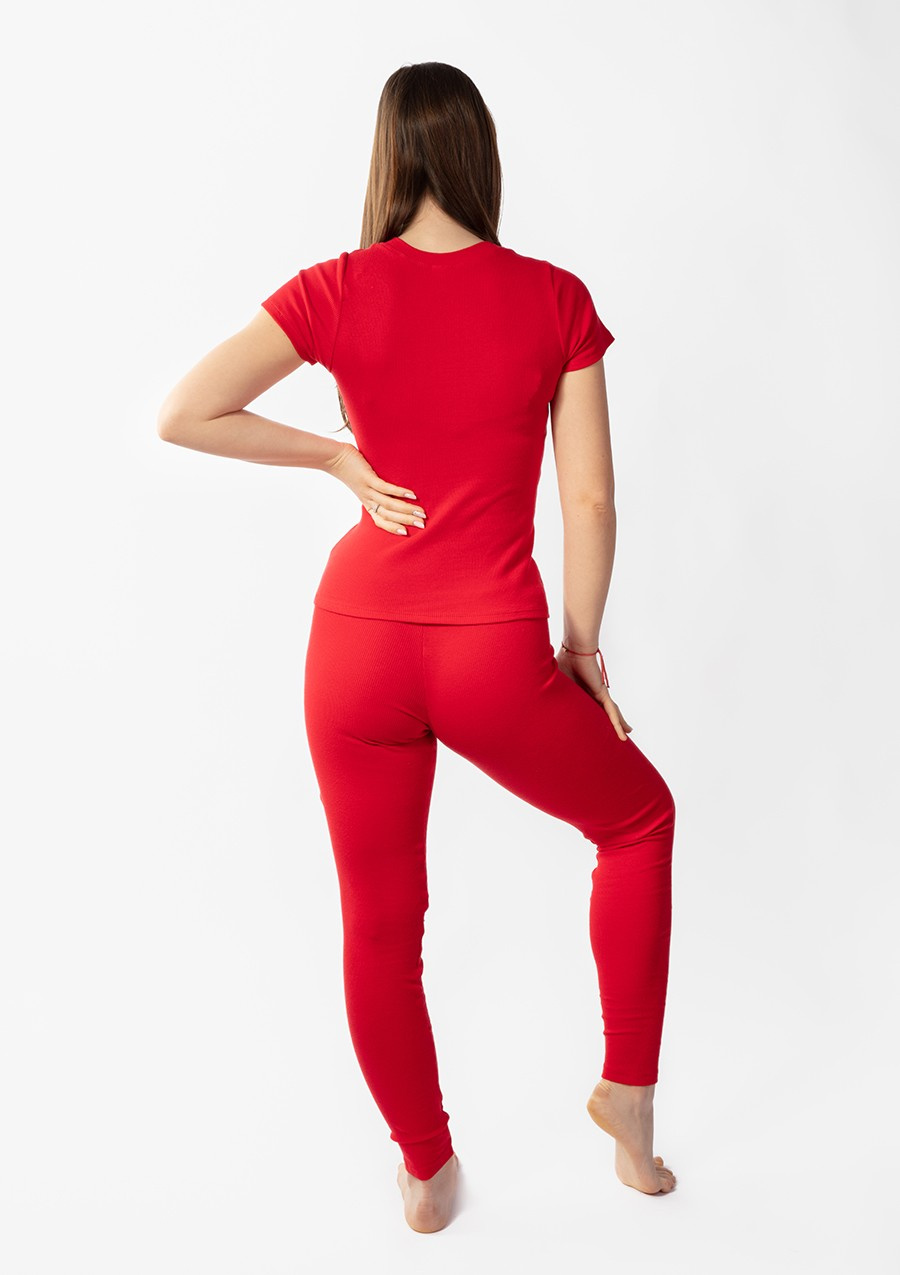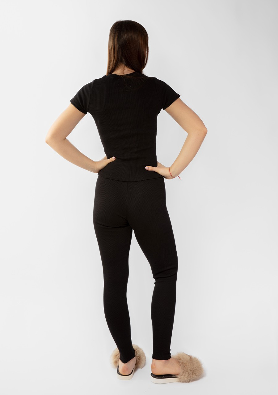 - Stylowy krój: Dopasowany fason sprawia, że komplet doskonale podkreśla sylwetkę, jednocześnie nie krępując ruchów.