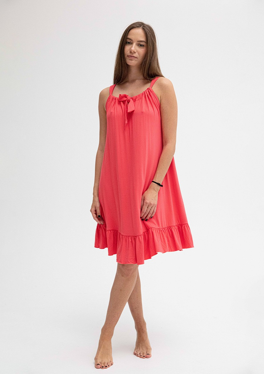 Odkryj wyjątkową sukienkę z wiskozy od Dkaren, która łączy w sobie elegancję, kobiecość i zmysłowy styl. To idealny wybór dla kobiet, które pragną podkreślić swoją urodę i poczuć się wyjątkowo w każdej sytuacji. Kobiecy fason z falbankami Sukienka charakteryzuje się delikatnymi falbankami, które dodają jej romantycznego uroku i subtelnie podkreślają sylwetkę. Wiązanie z przodu nie tylko nadaje całości wyjątkowego charakteru, ale również pozwala dopasować sukienkę do Twoich kształtów. Sukienka z wiskozy Wykonana z wysokiej jakości wiskozy, sukienka jest niezwykle lekka i przewiewna, co sprawia, że doskonale sprawdzi się zarówno na co dzień, jak i na specjalne okazje. Jej zwiewny materiał sprawia, że pięknie układa się na ciele, dodając lekkości i wdzięku. Kobieca sukienka Mimo swojego zmysłowego kroju, sukienka zapewnia wyjątkowy komfort noszenia. Jest nie tylko stylowa, ale także niezwykle wygodna, dzięki czemu możesz czuć się w niej swobodnie przez cały dzień. To idealna propozycja dla kobiet, które chcą wyglądać seksownie, nie rezygnując przy tym z wygody. Sukienka z wiskozy DKaren to esencja kobiecego stylu – lekka, zwiewna, a zarazem zmysłowa i pełna uroku. Doskonały wybór na każdą okazję, gdy chcesz poczuć się wyjątkowo i podkreślić swoją kobiecość. Sukienka z wiskozy kolory Sukienka Dkaren jest dostępna w wielu kolorach. Od stonowanych ecru po bardziej wyraziste kolory. Czerwona sukienka Dkaren Czerwona sukienka to must-have w każdej kobiecej garderobie. Ta czerwona mini, z falbankami i zmysłowym wiązaniem z przodu, idealnie podkreśla sylwetkę i dodaje pewności siebie. Jeśli szukasz czegoś, co przyciągnie spojrzenia i sprawi, że poczujesz się wyjątkowo, ta czerwona kiecka będzie strzałem w dziesiątkę. Niezależnie od okazji, czerwony kolor zawsze dodaje energii i sprawia, że stylizacja staje się niezapomniana. Jak prać i prasować wiskozę? Materiał wiskozę prać z procesem ochronnym w temepraturze nie wyższej niż 30°C / 40°C. Prasować w temperaturze nie wyższej niż 150°C. Nie czyścić chemicznie i nie suszyć w suszarce bębnowej. Pamiętaj, że najlepszym sposobem jest suszenie na wieszaku. Materiał: Wiskoza Skład surowcowy: 92%Wiskoza, 8% elastan.Szczegółowe dane