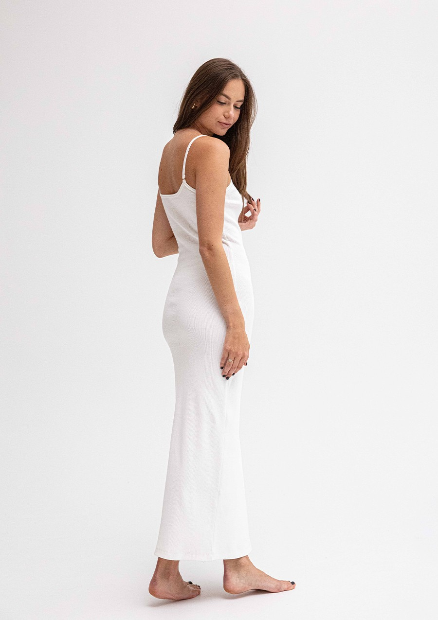 - Prosta sukienka, w kroju maxi od Dkaren ze zmysłowym rozcięciem na prawej nodze. Wysokiej jakości bawełna/prążek.