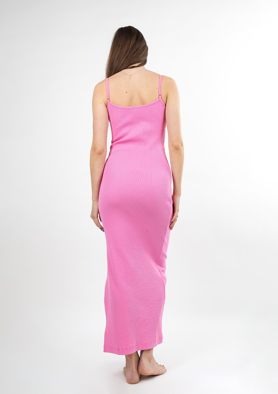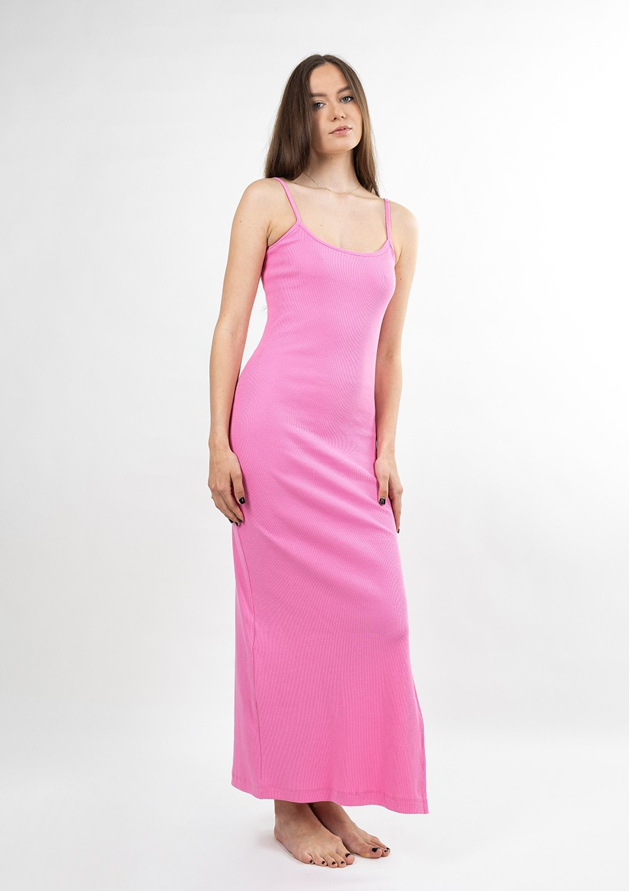 Sukienka długa w prążek z dużym wycięciem na bokuOdkryj nowy poziom elegancji i seksapilu z naszą długą sukienką w prążek, zaprojektowaną z myślą o podkreśleniu kobiecych kształtów. Ten model to esencja zmysłowego stylu, idealna na wyjątkowe okazje, gdy chcesz zrobić niezapomniane wrażenie.Zmysłowy i kobiecy krójSukienka wyróżnia się dużym wycięciem na boku, które subtelnie eksponuje nogę, dodając całej stylizacji seksapilu. Delikatne ramiączka i dopasowany krój idealnie podkreślają sylwetkę, podążając za każdym ruchem i podkreślając kobiece atuty.Gruby prążkowany materiałWykonana z wysokiej jakości prążkowanego materiału, sukienka jest nie tylko elegancka, ale również komfortowa. Prążkowana faktura dodaje jej subtelności, a jednocześnie podkreśla figury, tworząc efekt wysmuklający. Prążek jest gruby dzięki czemu nie ma obawy że materiał będzie prześwitywał.Sukienka w prążek kolorySukienka w prążek od Dkaren dostępna jest w wielu kolorach. Od klasycznych takich jak czerwony, czarny czy ecru po bardziej wyraziste jak fiolet, zieleń czy fuksja.Elegancja i wygodaDzięki swojej długości i wyrafinowanemu krojowi, ta sukienka jest idealnym wyborem na wieczorne wyjścia, romantyczne kolacje czy inne wyjątkowe okazje. Jednocześnie jest na tyle wygodna, że będziesz czuła się w niej swobodnie przez cały wieczór. Z sukienką Dkaren w prążek stworzysz stylizację, która nie tylko przyciągnie spojrzenia, ale też pozwoli Ci poczuć się pewnie i kobieco w każdej sytuacji. Jak prać i prasować bawełnę? Materiał wiskozę prać z procesem ochronnym w temperaturze nie wyższej niż 30°C / 40°C. Prasować w temperaturze nie wyższej niż 150°C. Nie czyścić chemicznie i nie suszyć w suszarce bębnowej. Pamiętaj, że najlepszym sposobem jest suszenie na wieszaku.Materiał: BawełnaSkład surowcowy: 95 % bawełna, 5 % elastan.Dopasowana sukienka DK-K-P7 - róż bawełna prążki to idealny wybór dla każdej kobiety, która pragnie czuć się komfortowo i stylowo w każdej sytuacji. Ten wyjątkowy model od marki Dkaren łączy w sobie nowoczesny design oraz funkcjonalność, co czyni go niezbędnym elementem w Twojej garderobie na rok 2025.
