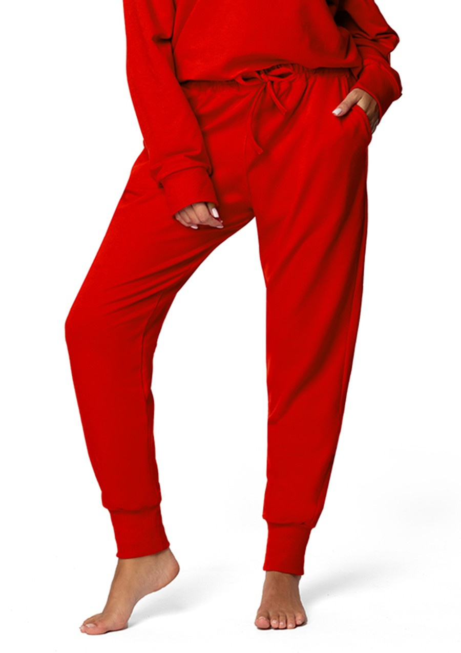 Spodnie dresowe DK-K-B7 w intensywnym odcieniu czerwonym to prawdziwy hit sezonu 2025. Ich gładka struktura, w połączeniu z sportowym krojem, dodaje świeżości i dynamiki każdej stylizacji. To doskonały wybór dla kobiet, które chcą wyróżnić się z tłumu i poczuć się pewnie w każdej sytuacji.