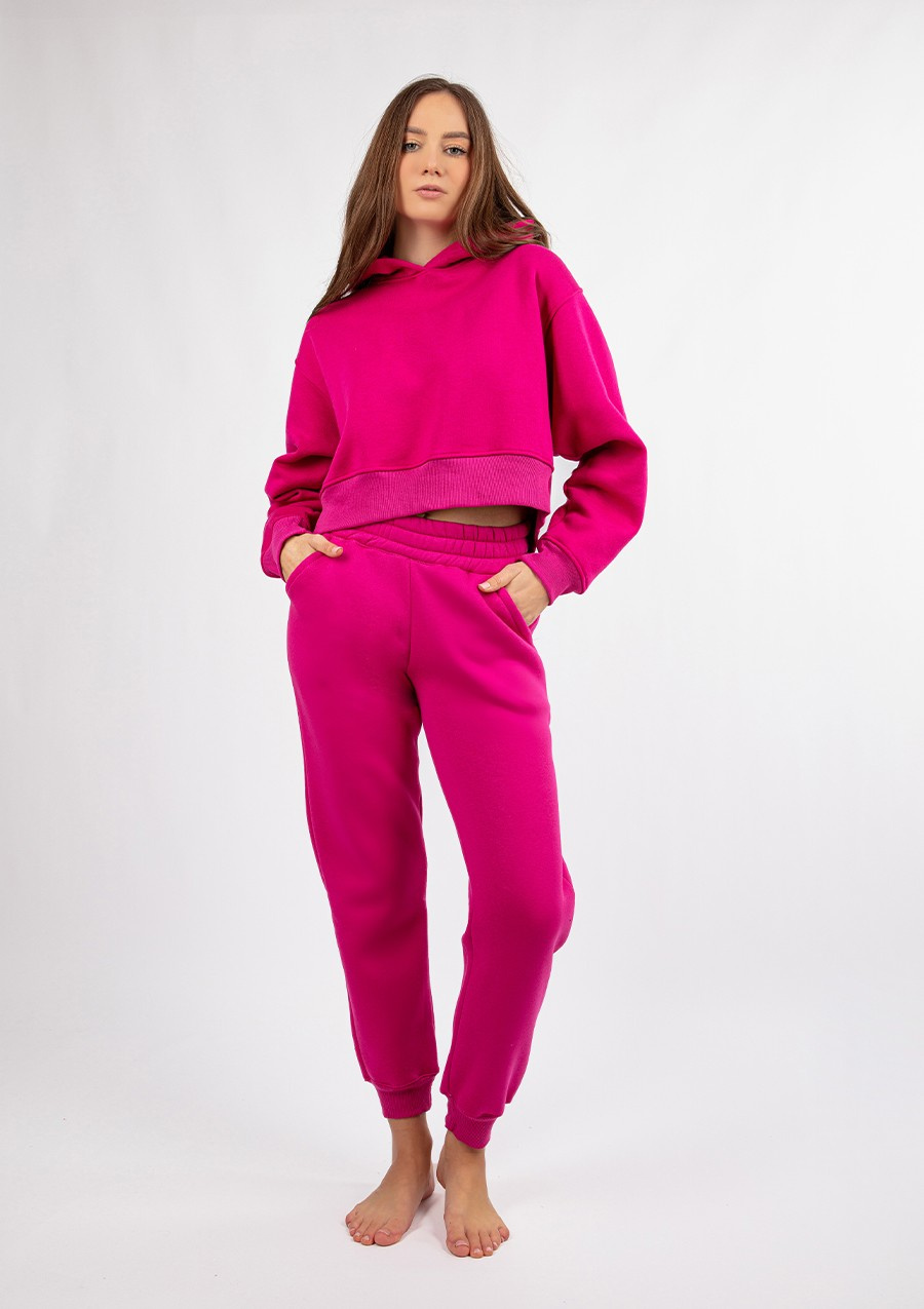 - Stylowy design: Luźny krój sprawia, że zestaw doskonale dopasowuje się do sylwetki, a jego intensywny kolor fuksji dodaje energii i świeżości każdej stylizacji.