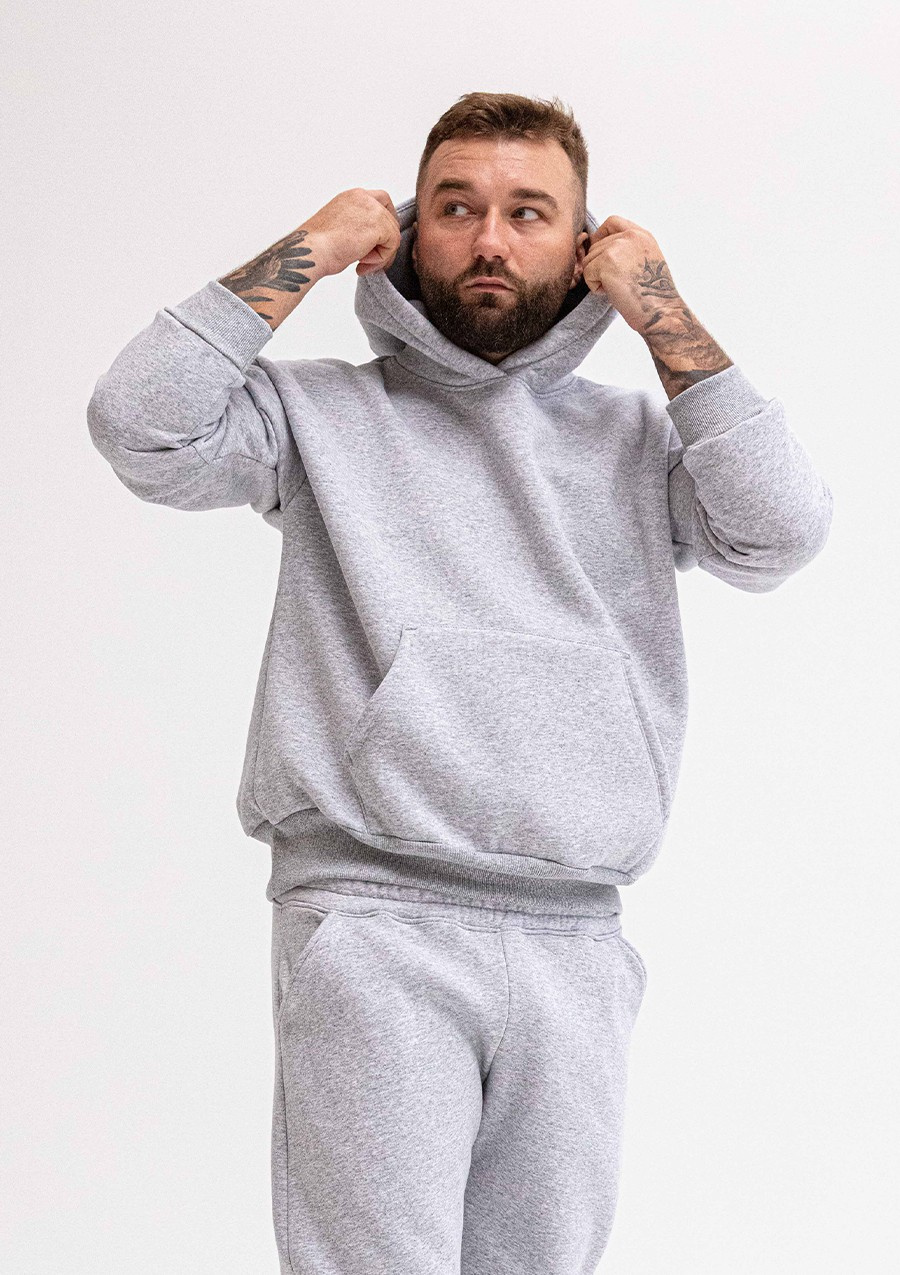 Sportowa bluza męska z kapturem DK-K-B14Dkaren, ta bluza w kolorze jasnego szarego jest doskonałym połączeniem nowoczesnego designu z funkcjonalnością.