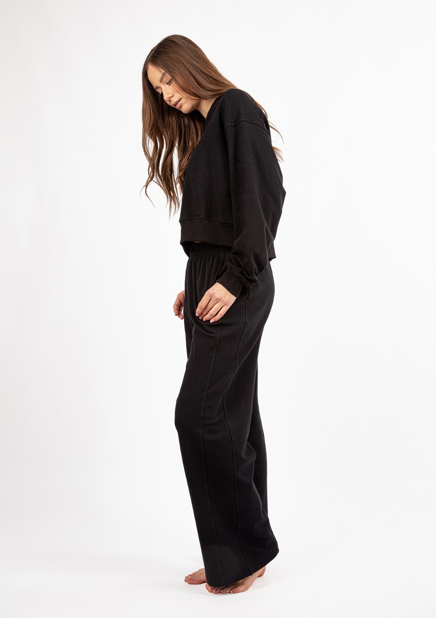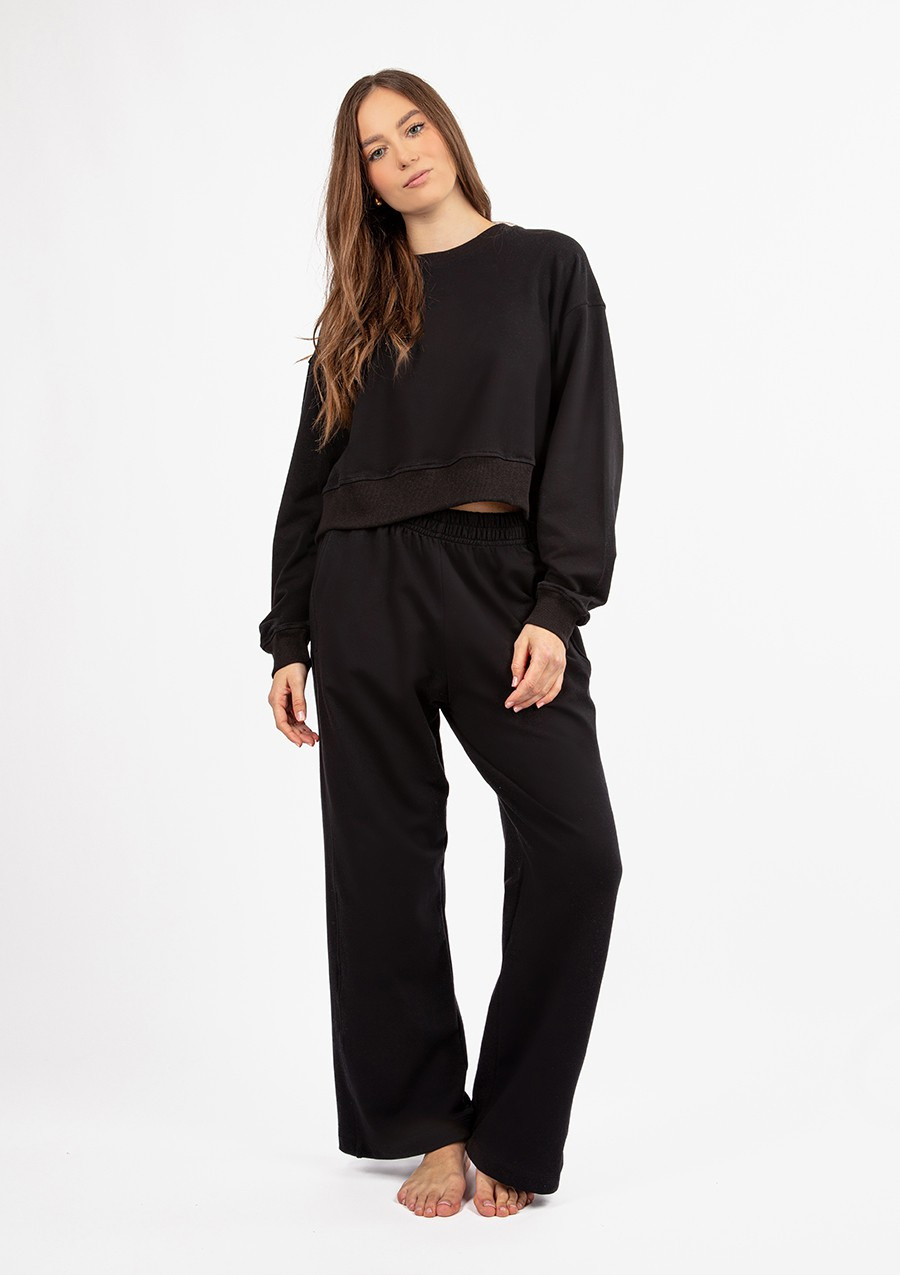 Komplet dresowy DK-K-B23Dkaren to doskonały wybór dla każdej kobiety ceniącej sobie komfort, styl i wysoką jakość wykonania. Wykonany z 95% bawełny z dodatkiem 5% elastanu, ten czarny dres jest nie tylko przyjemny w dotyku, ale także doskonale dopasowuje się do sylwetki, podkreślając jej atuty.