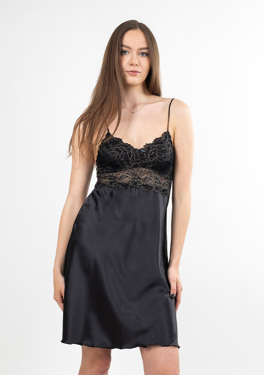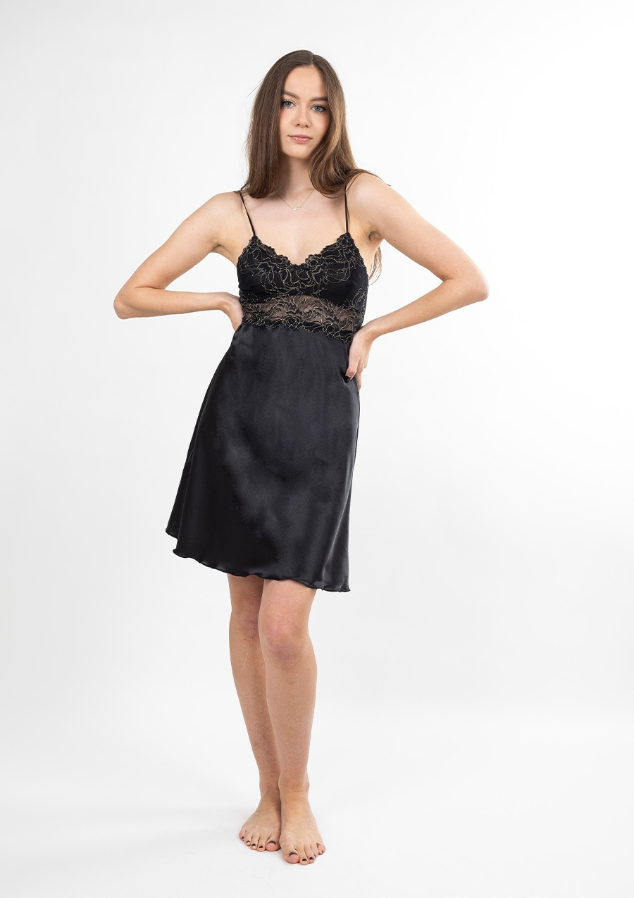 Halka Truda – zmysłowa elegancja czerni i złota od Dkaren Halka Truda jest propozycją dla kobiet, które cenią sobie połączenie elegancji, subtelnej zmysłowości i najwyższej jakości wykonania. Projekt marki Dkaren łączy klasyczną czerń z delikatnymi złotymi akcentami, tworząc wyjątkowy element garderoby, idealny na wieczory pełne kobiecości i wdzięku. Ta halka to nie tylko nocna bielizna – to stylowa propozycja, która podkreśla urodę i pewność siebie każdej kobiety. Satyna w roli głównej Głównym atutem halki Truda jest wysokiej jakości czarna satyna, która nie tylko zachwyca eleganckim połyskiem, ale również gwarantuje maksymalny komfort noszenia. Materiał ten pięknie układa się na sylwetce, delikatnie ją otulając i podkreślając kobiece kształty. Lekka, chłodna w dotyku satyna sprawia, że halka jest idealna na każdą porę roku – zapewnia wygodę zarówno latem, jak i zimą. Koronkowe wykończenia z nutą złota Czym wyróżnia się halka Truda? Zdecydowanie koronką. Górna część halki została ozdobiona misterną, czarną koronką z wstawkami w kolorze złota, które subtelnie rozświetlają całość i nadają jej wyjątkowego charakteru. Złote nici wplecione w koronkę dodają całości elegancji i lekko ekstrawaganckiego wyrazu, który doskonale sprawdzi się zarówno w intymnej atmosferze, jak i jako element stylizacji domowej. Koronka znajduje się nie tylko na dekolcie, ale również w pasie, gdzie tworzy półprzezroczystą wstawkę, delikatnie odsłaniając skórę i nadając halce lekkości oraz zmysłowego uroku. Kobiecy krój i dopracowane detale Halka Truda ma klasyczny, lekko rozszerzający się ku dołowi krój, który pięknie układa się na ciele i nie krępuje ruchów. Cienkie, regulowane ramiączka pozwalają idealnie dopasować długość halki do indywidualnych preferencji, a staranne wykończenie szwów zapewnia trwałość i komfort użytkowania. Model ten świetnie sprawdzi się zarówno jako elegancka bielizna nocna, jak i jako element stylizacji typu homewear – w połączeniu z satynowym szlafrokiem stworzy wyjątkowy zestaw na wieczór lub leniwy poranek. Zmysłowa klasyka od Dkaren Halka Truda to doskonały wybór dla kobiet, które poszukują bielizny nocnej łączącej w sobie elegancję, komfort i subtelny luksus. Czarna satyna i złota koronka to duet, który nigdy nie wychodzi z mody – zachwyca i przyciąga wzrok, jednocześnie pozostając niezwykle klasyczny. Wybierając halkę Truda od polskiej marki Dkaren, inwestujesz w jakość, styl i kobiecość, które pozostaną z Tobą na dłużej. To propozycja dla kobiet świadomych swojego stylu – takich, które chcą czuć się wyjątkowo nie tylko na specjalne okazje, ale także na co dzień. Jak prać i prasować ? Materiał prać z procesem ochronnym w temepraturze nie wyższej niż 30°C / 40°C. Prasować w temperaturze nie wyższej niż 150°C. Nie czyścić chemicznie i nie suszyć w suszarce bębnowej. Pamiętaj, że najlepszym sposobem jest suszenie na wieszaku. Materiał: Poliester Skład surowcowy: 100 % poliesterOdkryj Zmysłową Halkę Truda od Dkaren! Ta ekskluzywna halka w kolorze satyna czarny to idealna propozycja dla kobiet, które cenią sobie elegancję, wygodę i zmysłowość w każdym detalu.