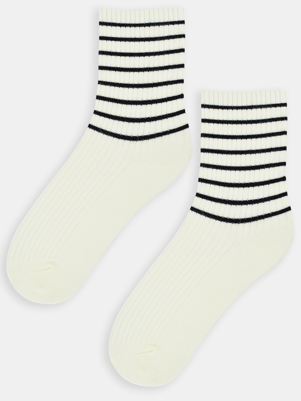 Wybierz skarpety damskie z wełną w paski SB140 ecru od Noviti i doświadcz połączenia komfortu, stylu i wysokiej jakości. Te skarpetki to must-have każdej modnej kobiety!