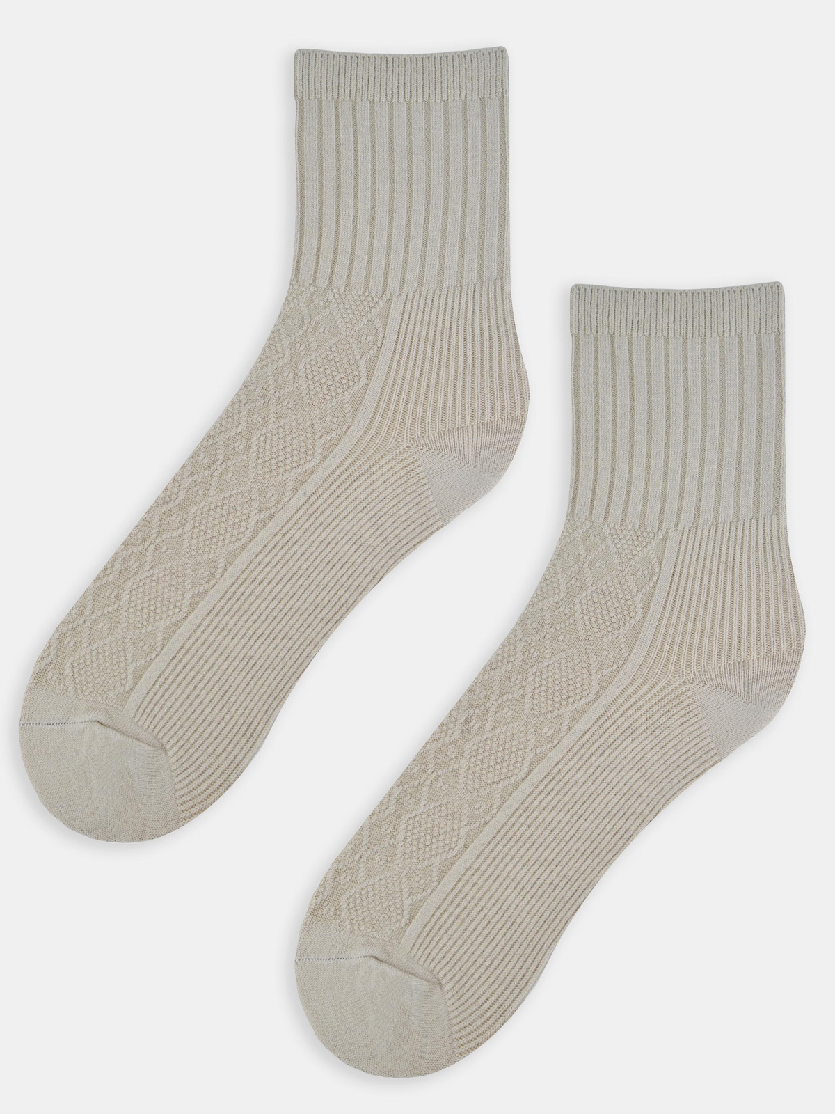 - Ciepłe akrylowe skarpety z dodatkiem wełny. Jednokolorowe skarpetki z delikatnym wzorem w prążki, idealne na zimne dni i wieczory.