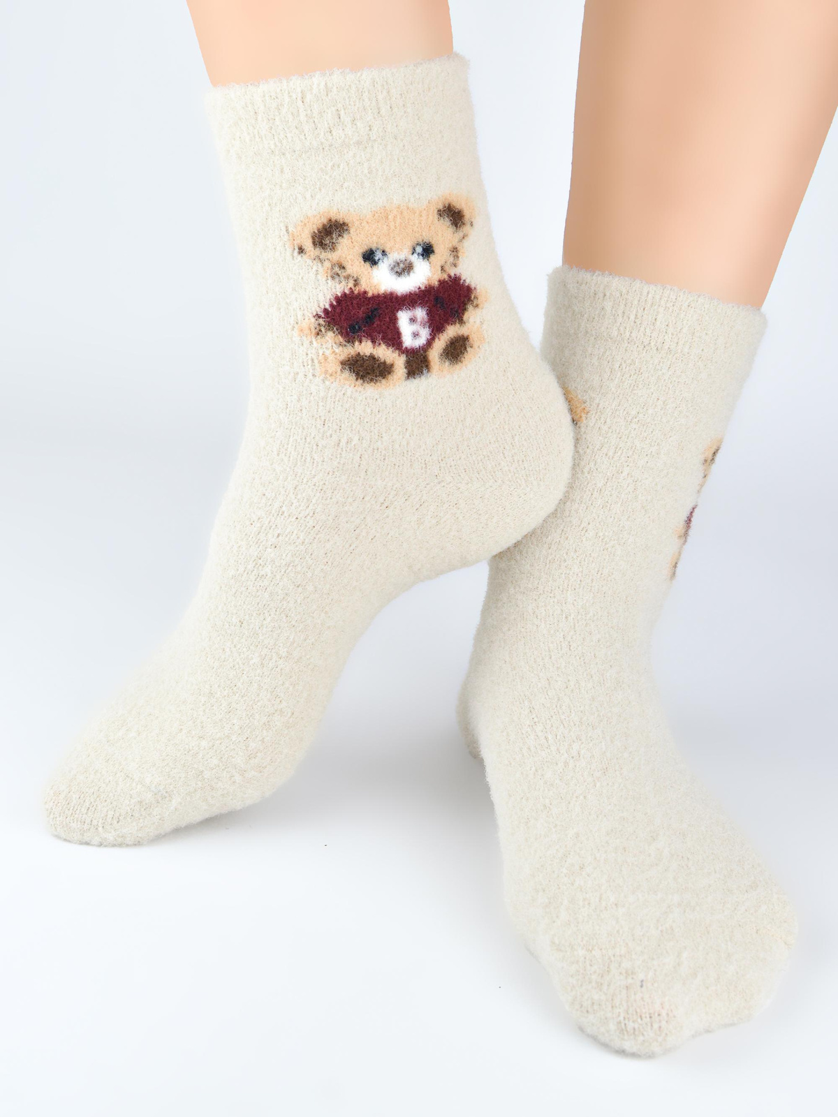 - Puchate, słodkie skarpetki z zabawnym misiaczkiem. Cieplutkie urocze skarpetki damskie.