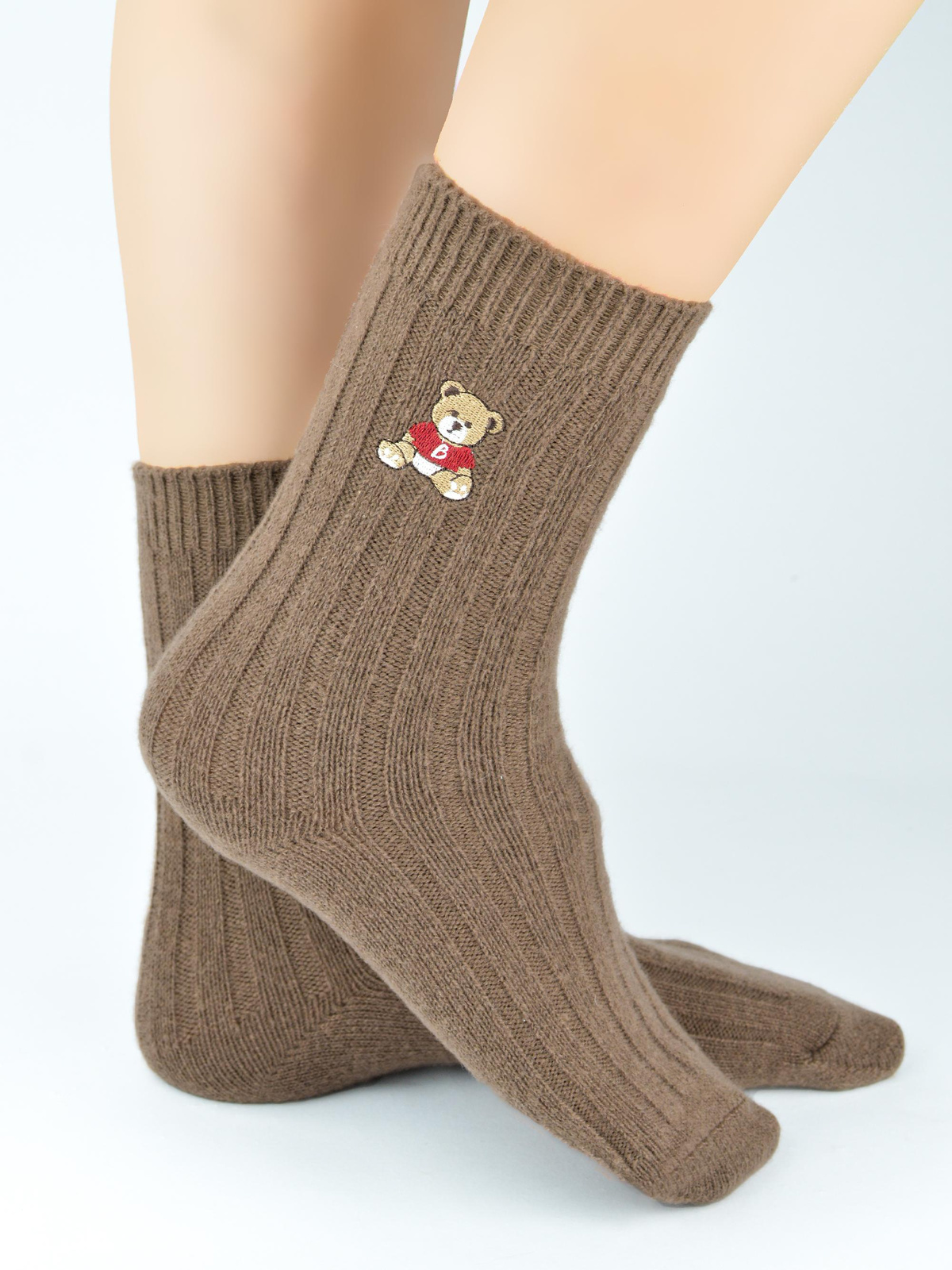- Ciepłe skarpetki za kostkę, marki Noviti. Na wysokości kostki przeuroczy miś w czerwonej kamizelce.