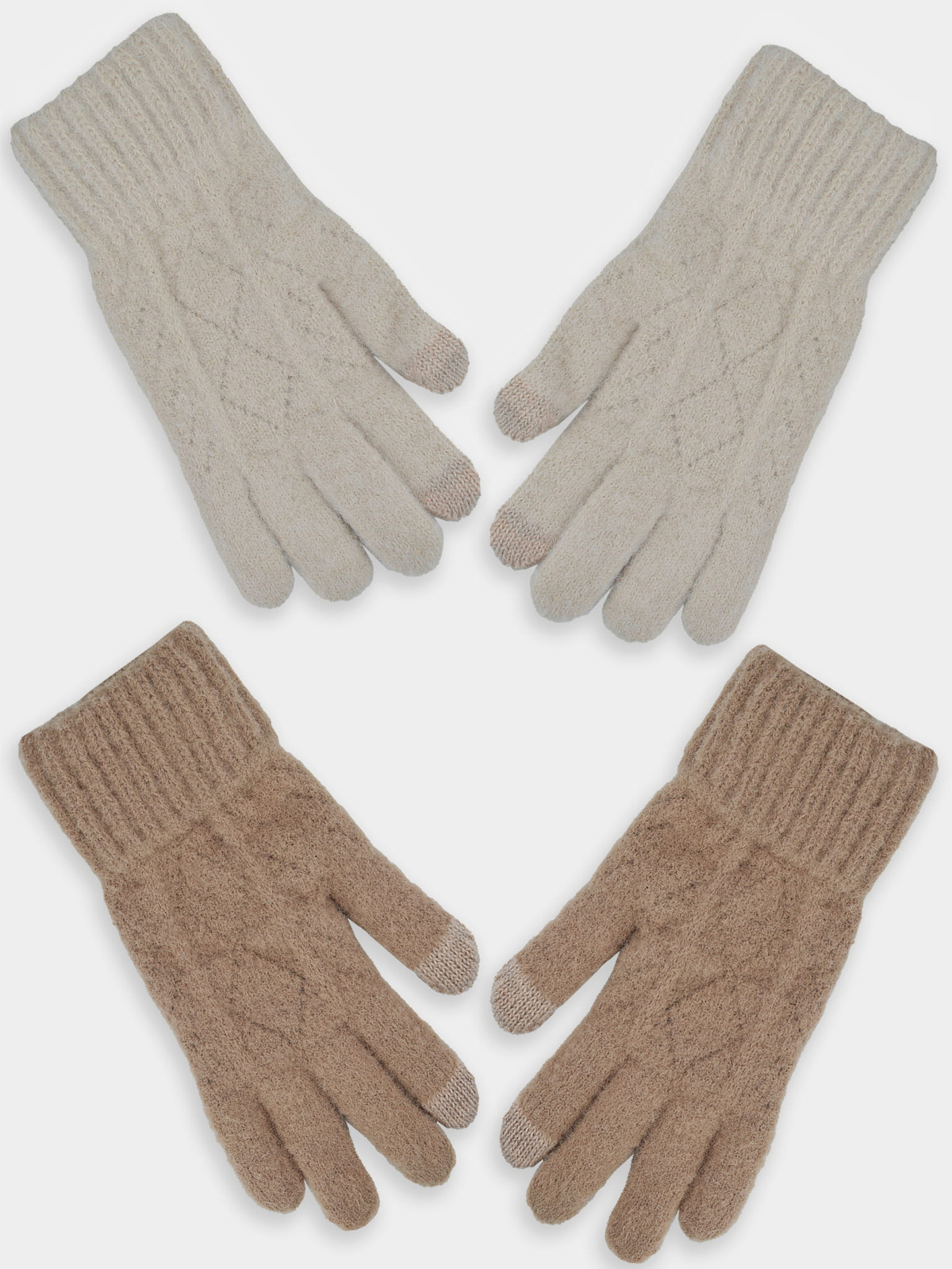 - Ciepłe rękawiczki jednokolorowe. Rękawiczki z dotykiem na telefon. Sprzedawane w wielopaku w kolorach: brąz, beż.