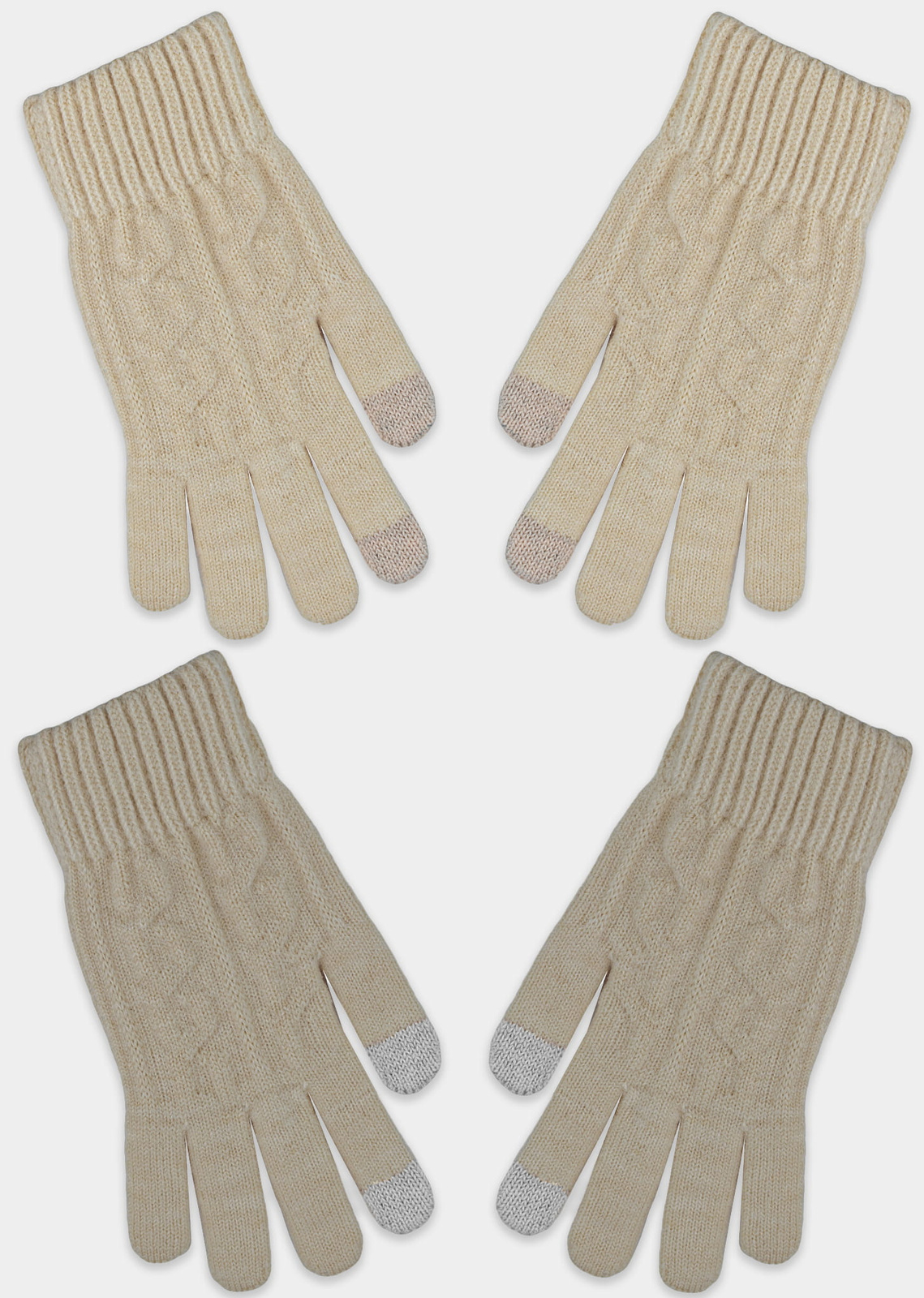 - Ciepłe rękawiczki jednokolorowe. Rękawiczki z dotykiem na telefon. Sprzedawane w wielopaku w kolorach: ecru, beż.