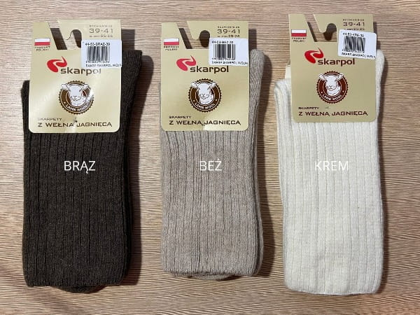 - Ekskluzywne skarpetki z wełny jagnięcej Skarpol 53. Wyjątkowe skarpetki zawierające minimum 67% czystej wełny. Ciepłe, prawdziwie wełniane skarpetki, które zapewniają naturalne uczucie ciepła i komfortu.