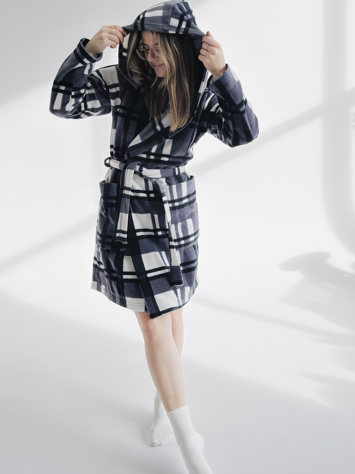 - Przytulny ciepły szlafrok/ kocyk z kapturem o długości do kolana, wiązany w pasie. Idealny na zimowe wieczory.