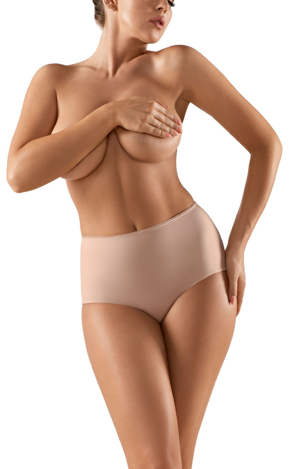 Gładkie majtki z wysokim stanem Babell 2005. Wysokie majtki damskie doskonale zakrywają wszelkie niedoskonałości figury. Dodatkowo mają płaskie szwy i laserowo cięte nogawki więc nie będą się odznaczać pod ubraniem . Modelujące, gładkie figi damskie, z elastycznej dzianiny, przód podszyty dodatkową warstwą materiału dla lepszej korekcji brzucha.Majtki damskie Babell 2005 to doskonały wybór dla każdej kobiety, która szuka połączenia elegancji i komfortu. Ich gładki, beżowy kolor sprawia, że idealnie komponują się z różnymi stylizacjami. Majtki te w modelu maxi zapewniają pełne pokrycie, co czyni je idealnym rozwiązaniem zarówno na co dzień, jak i na specjalne okazje. Dzięki temu, że są bezszwowe, noszenie ich jest niezwykle komfortowe, niezależnie od przypadku.